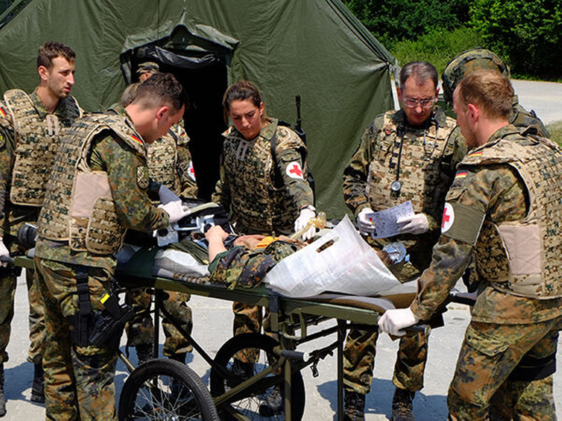 Im Mittelpunkt des Sanitätsdienstes steht jedoch die Versorgung verwundeter Soldaten unter Einsatzbedingungen. Die wird im Zentrum für Einsatzausbildung in Feldkirchen so realistisch wie möglich trainiert. Jeder Soldat, der in den Auslandseinsatz geht, verfügt über Grundkenntnisse in Erster Hilfe. Darüber hinaus gibt es Einsatzersthelfer mit verschiedenen Qualifikationsstufen (A-C).