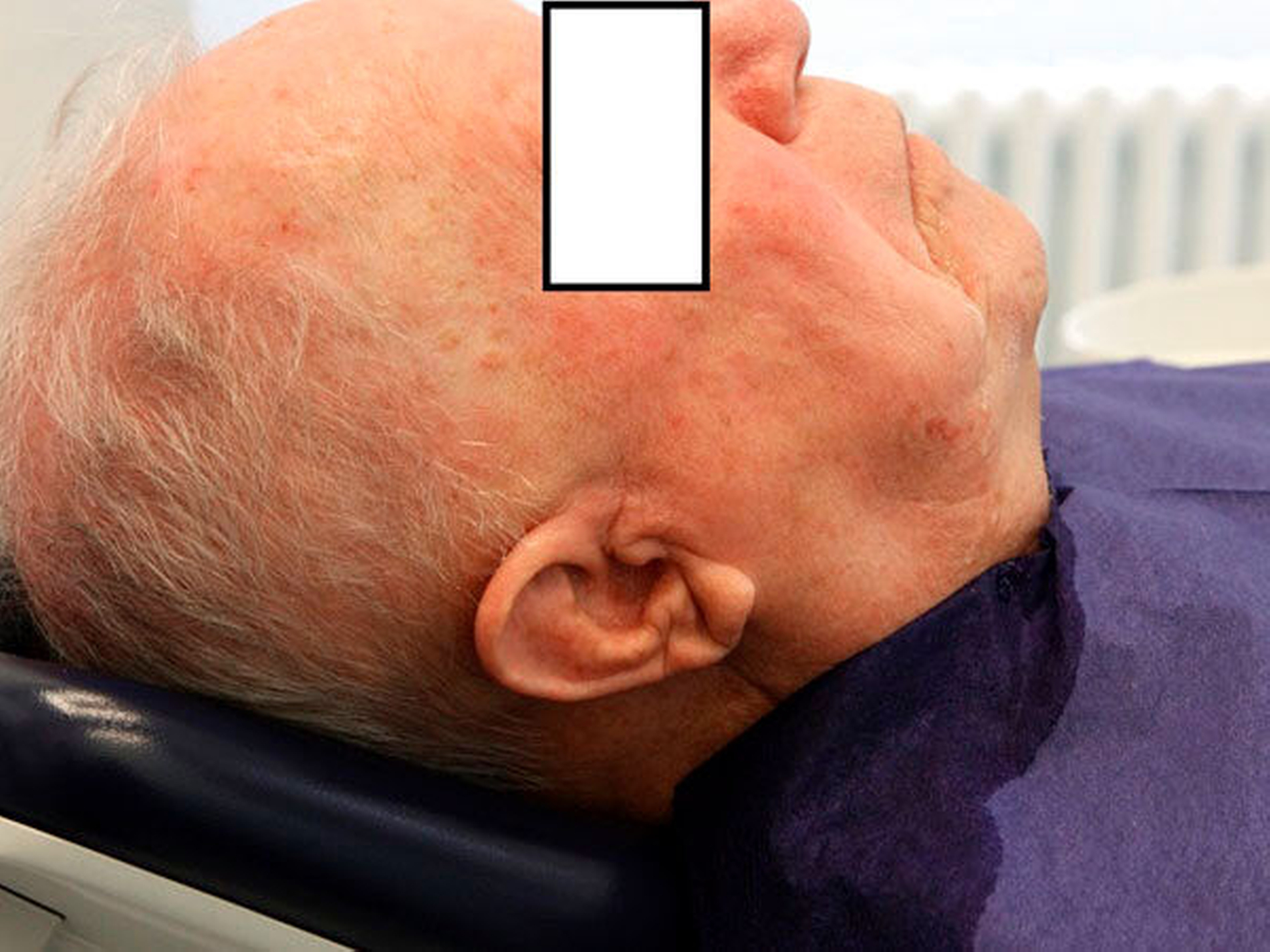 Behandlungsplanung, genaue Dauer und Anzahl der Termine sollten mit den Patienten und den Angehörigen transparent kommuniziert werden. Therapieentscheidungen und die Organisation der Termine brauchen häufig die Mithilfe von Angehörigen, ebenso können diese frühzeitig Rückmeldung über mögliche Veränderungen im Krankheitsverlauf geben [Muller, 2014]. Bei der Herstellung neuer Prothesen sollte Wert darauf gelegt werden, dass diese auch für spätere Krankheitsphasen praktikabel sind, sowohl für die Patienten selbst als auch für die Angehörigen und Pflegekräfte, die die Versorgung erwartbar übernehmen werden (Abbildung 5).