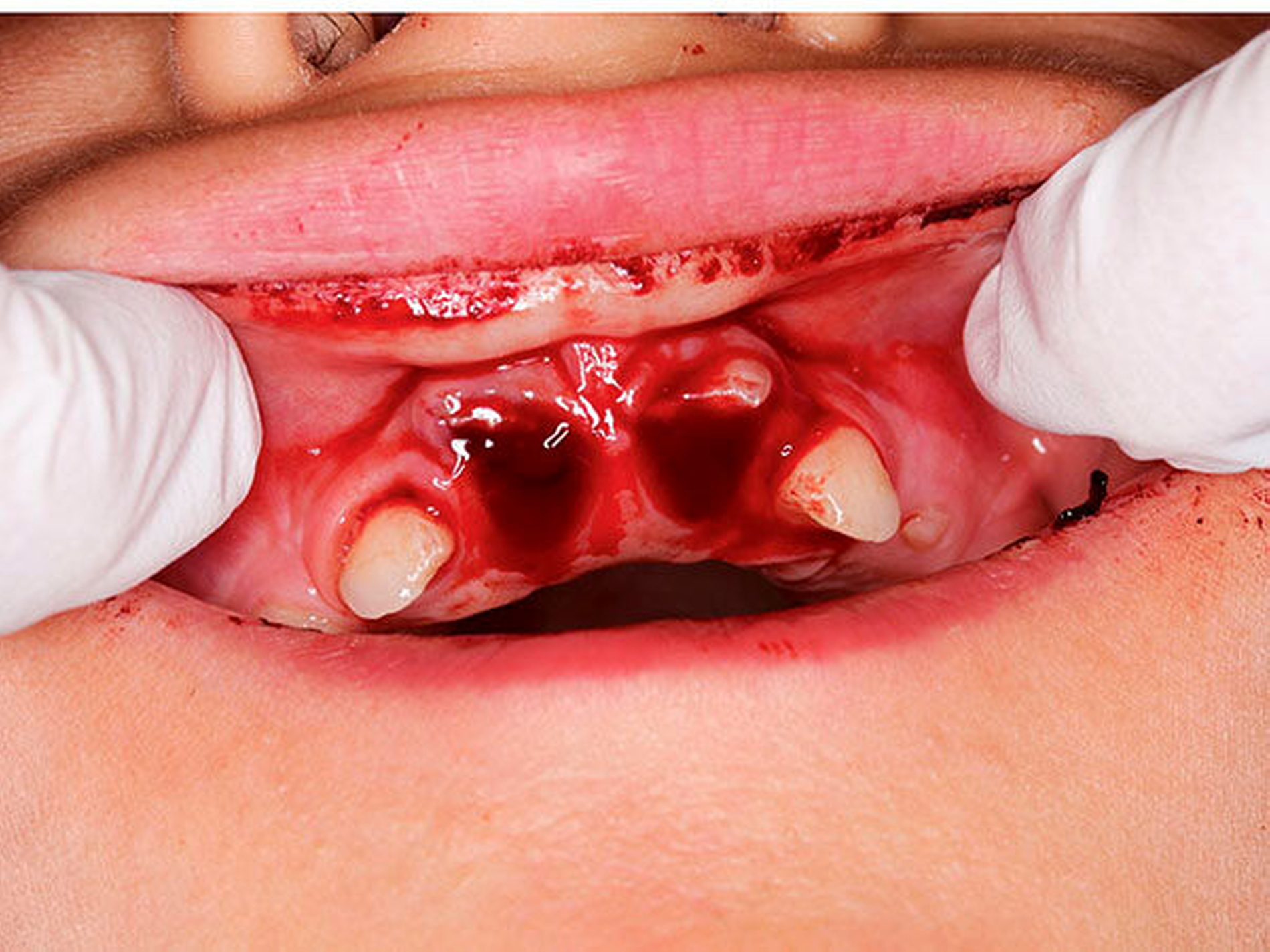 Intrudierte bleibende Zähne haben in Bezug auf die Vitalität eine schlechte Prognose, bei abgeschlossenem Wurzelwachstum gibt es keine Chance. Bei Bedarf sollte laut Duggal immer versucht werden, diese orthodontisch oder chirurgisch zu extrudieren [British Society of Paediatric Dentistry, 2012; Nazzal et al., 2014]. Auf diese Weise ließen sich auch bei schlechter dentaler Langzeitprognose der Alveolarknochen und das zugehörige Weichgewebe für spätere Implantationen erhalten.