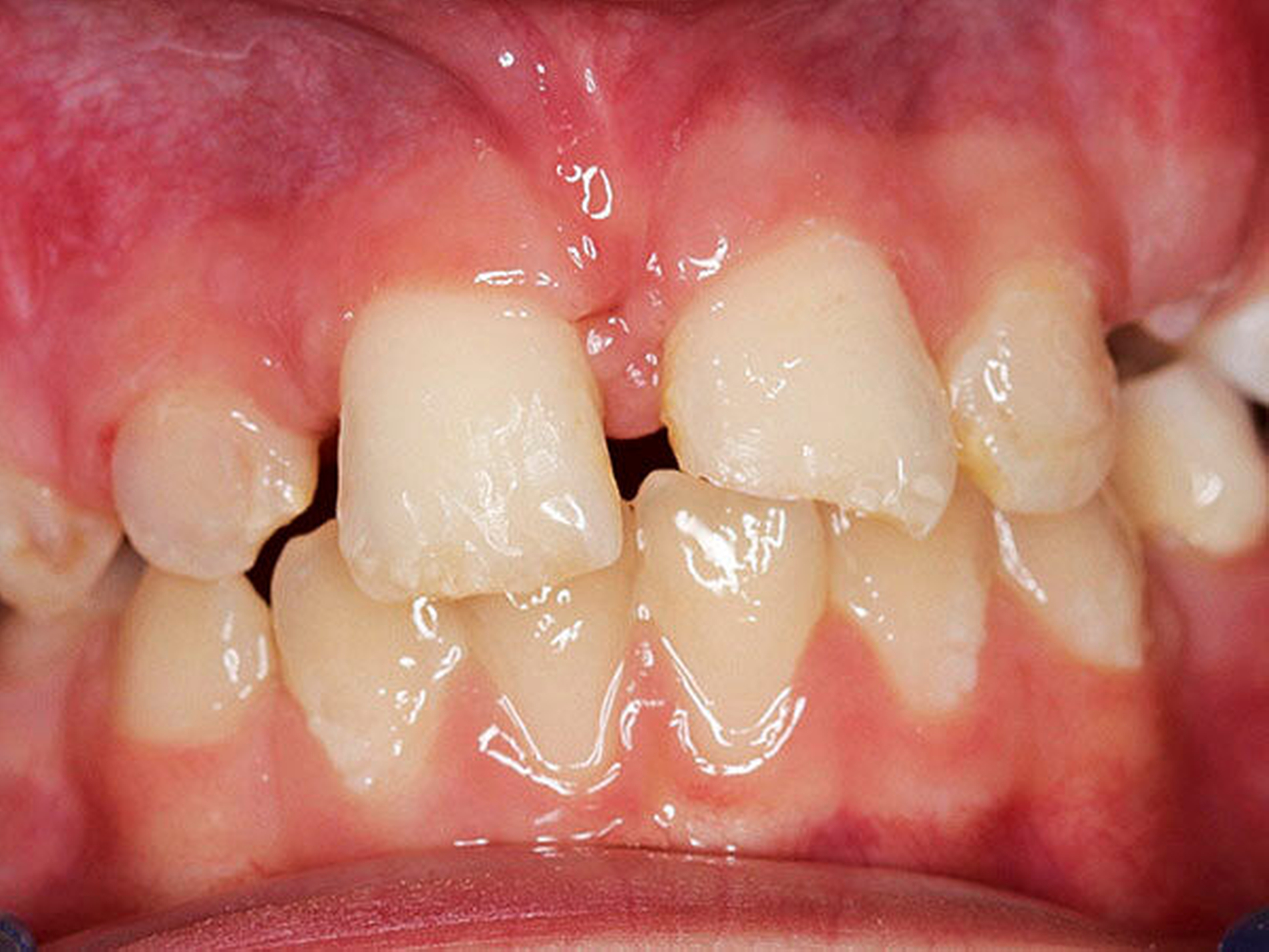 Versorgung Frontzahnbereich: adhäsives Komposit, Non-Prep-Veneers (erst nach Durchbruch der Eckzähne)
