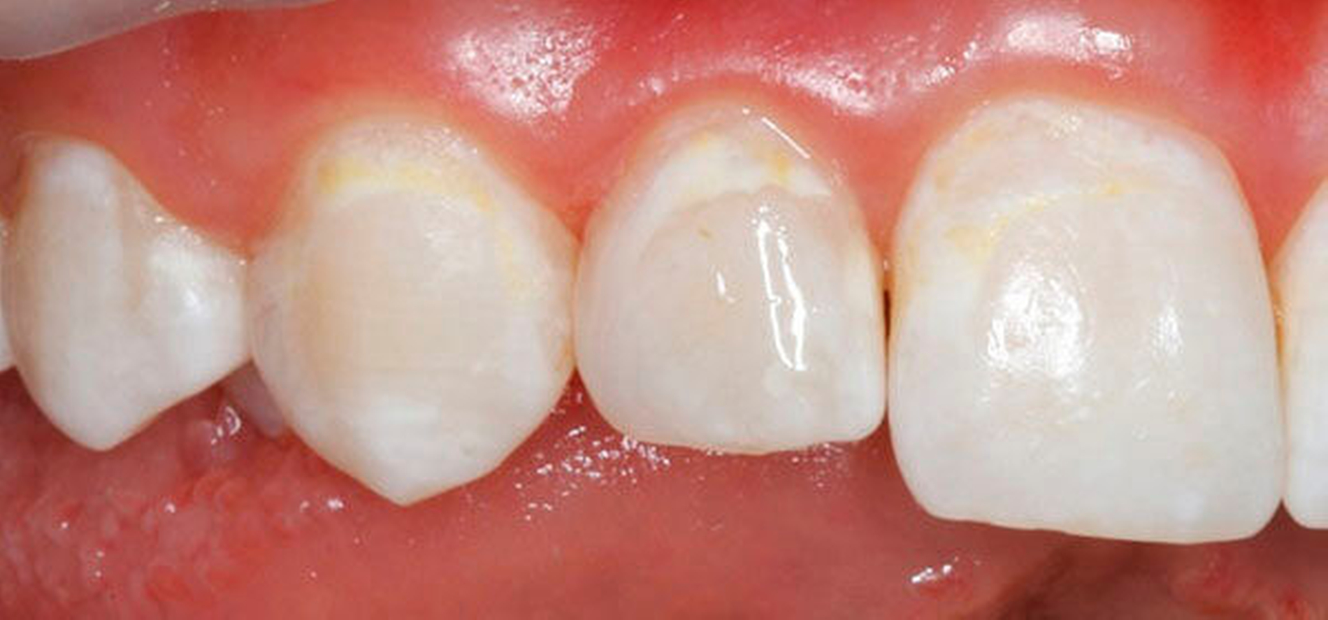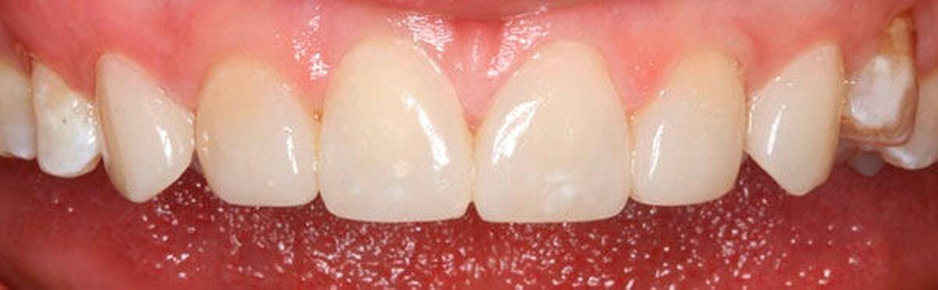 Im folgenden Fall werden die wichtigen Schritte eines Lückenschlusses mit Komposit nach einer KFO-Behandlung einer Patientin im Alter von 29 Jahren beschrieben. Sie stellte sich mit der Bitte um eine Füllungskorrektur der Zähne 13 und 23 nach einer KFO-Behandlung vor (Abbildungen 4 bis 7). Die Patientin leidet unter Oligodontie, mit fehlender Anlage der Zähne 12, 22, 25, 37, 41, 45 und 47. Eine Oligodontie hat erhebliche funktionelle Auswirkungen im Mund und psychosoziale Auswirkungen auf die Lebensqualität. Die Behandlung von Oligodontie bei Erwachsenen bedarf eines interdisziplinären Managements, die eine KFO-Behandlung in Kombination mit restaurativen Methoden beinhaltet.