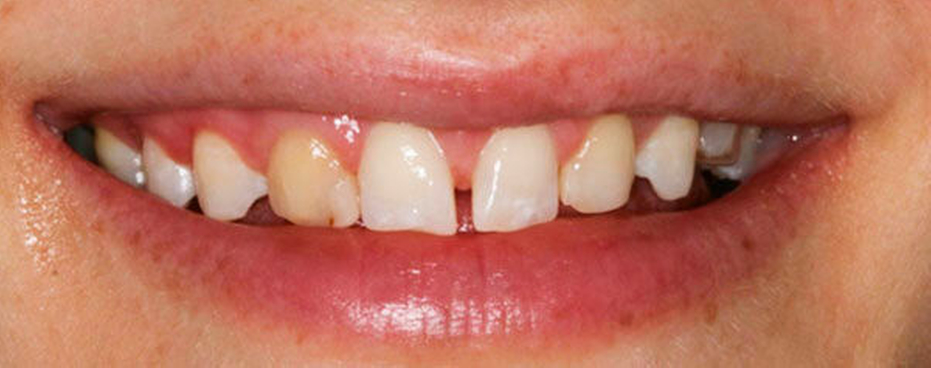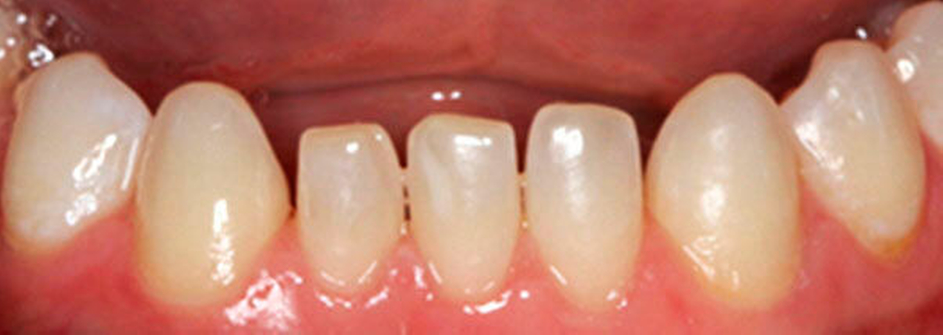Nichtanlagen bleibender Zähne sind nicht ungewöhnlich und stellen mit einer Prävalenz von 1,5 bis 11,3 Prozent die häufigste Fehlformation im Mund-Kiefer-Gesichtsbereich dar [Hourfar et al., 2016]. In solchen Fällen (Hypodontie und Oligodontie) entsteht der Bedarf nach Lückenschluss nach dem Ende der KFO-Behandlung und zielt hauptsächlich auf das „Kaschieren“ von Asymmetrien und die Wiederherstellung der fehlenden Harmonie ab. Im Fall einer Nichtanlage wird meist durch eine Umformung des Zahnes, der an der Position des fehlenden Zahnes steht, die entstandene Lücke geschlossen. Bei Zahnformanomalien, zum Beispiel einem Zapfenzahn oder einer Hypoplasie der oberen seitlichen Schneidezähne, können die existierenden Lücken mit der Wiederherstellung der Zahnform durch Umformung mit einer Restauration oder auch (bei Bedarf) mit einem zusätzlichen selektiven Beschleifen des Zahnes behandelt werden.