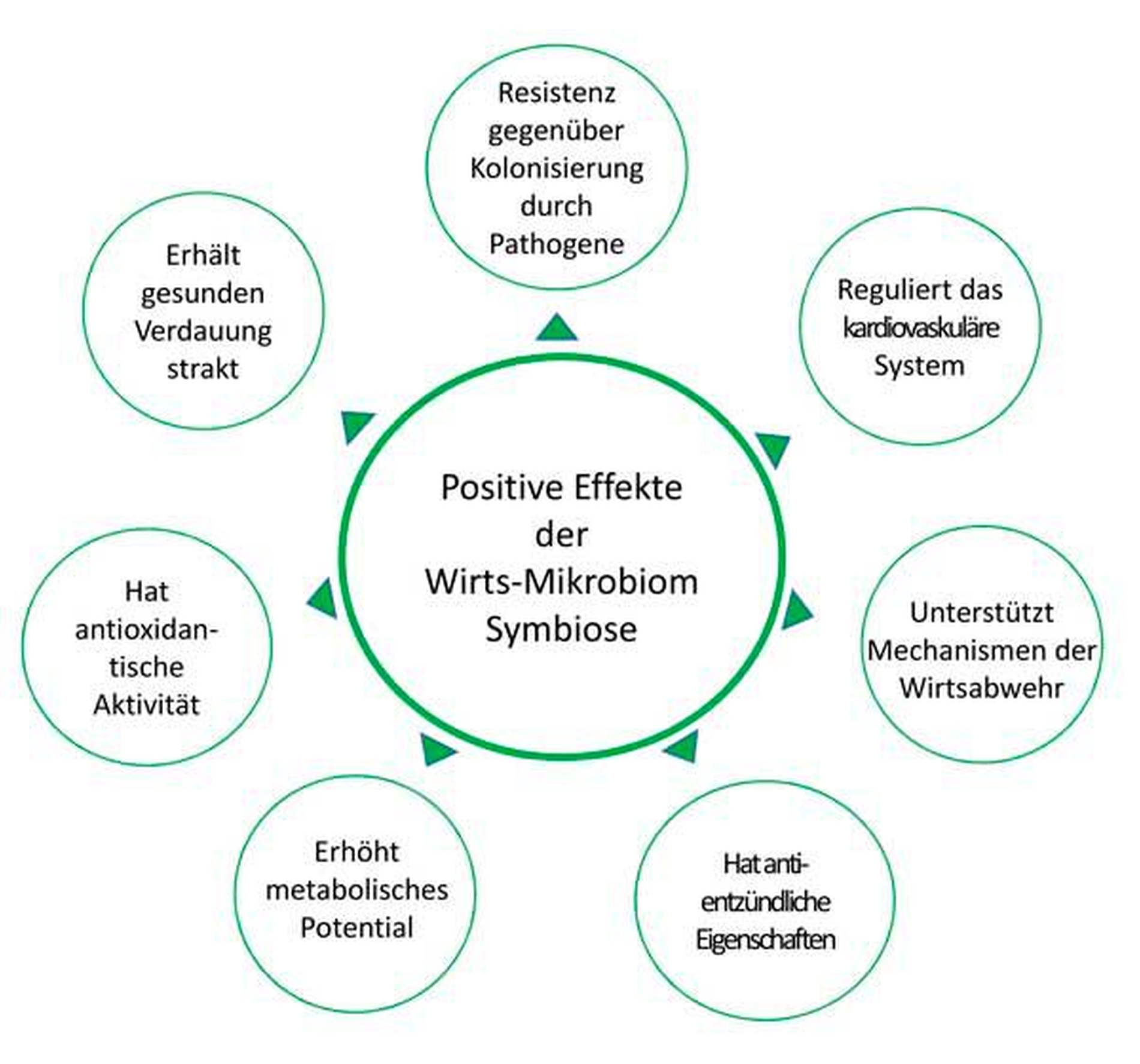 Symbiose – ein gegenseitig benefizielles Verhältnis zwischen den Mitgliedern einer mikrobiellen Gemeinschaft sowie zwischen den mikrobiellen Gemeinschaften und dem Wirt.