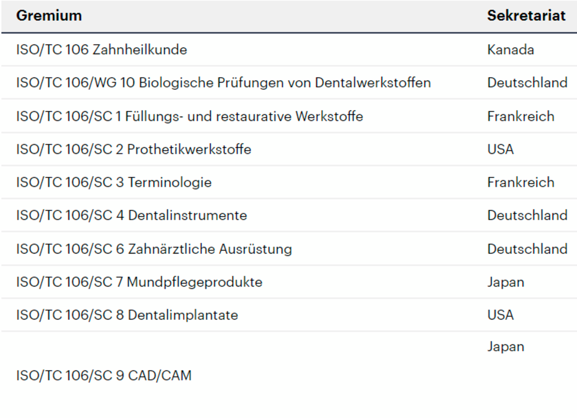Struktur des ISO/TC (Technical Committee) 106 „Zahnheilkunde“
