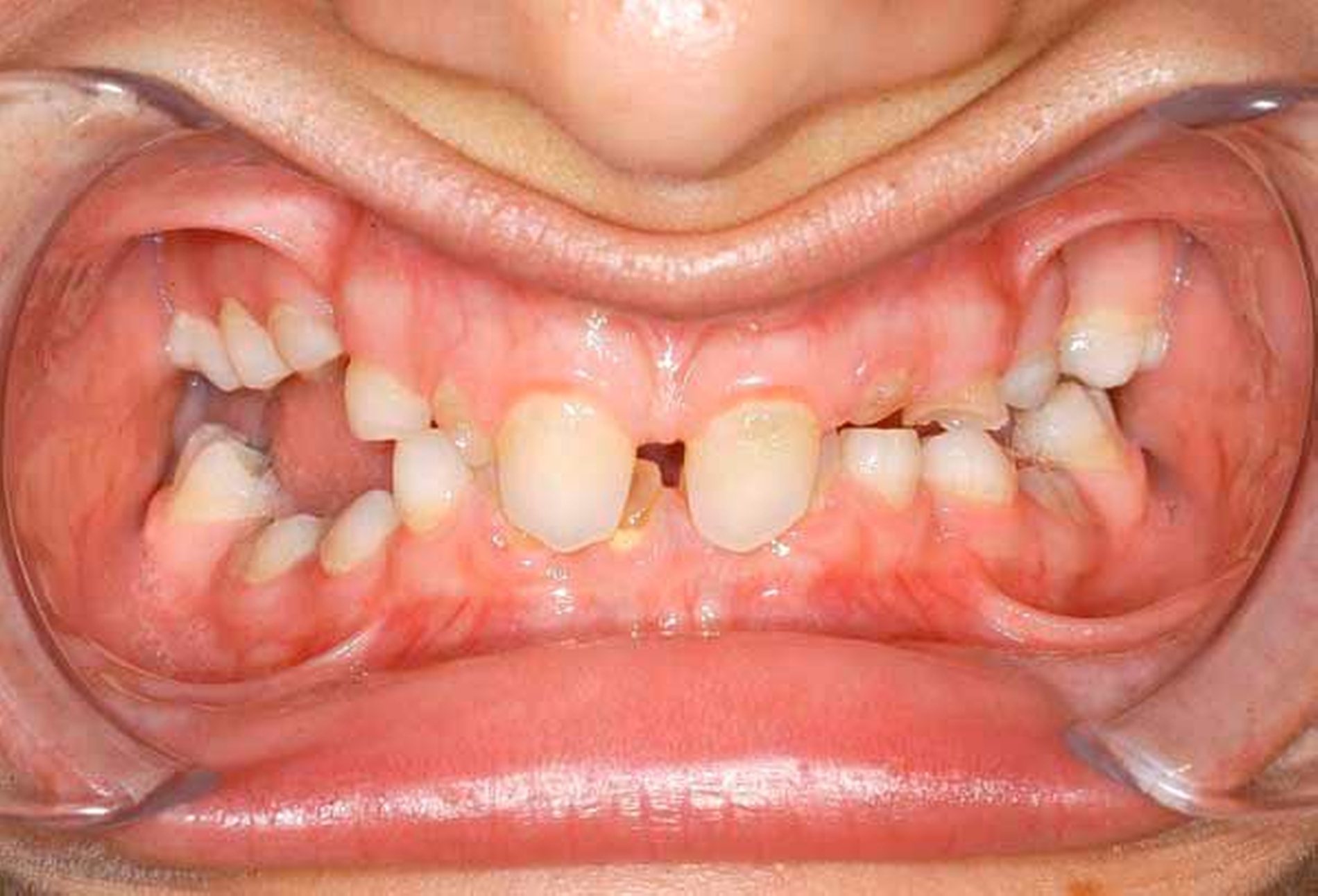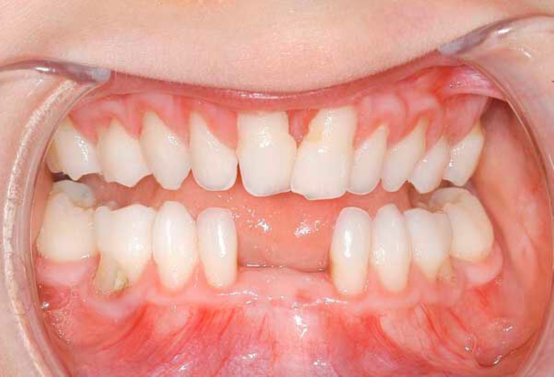 Bei der Inspektion der Mundhöhle zeigt sich eine generalisierte Parodontitis mit bereits exponierten Furkationen der Milchmolaren. Die Diagnose lautet zunächst schwere, generalisierte Parodontitis.