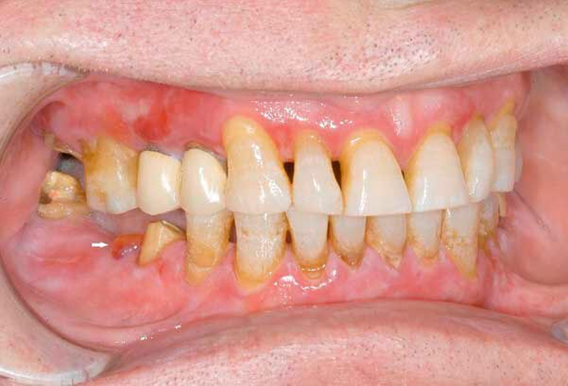 Ein 67-jähriger Mann wird mit Schmerzen und Brennen der Mundschleimhaut vorstellig. Durch den Hauszahnarzt wurden bereits die topische Anwendung einer Chlorhexidin-haltigen Mundspüllösung sowie die Anwendung eines Lidocain-haltigen Gels verordnet, wobei dies keine Linderung der Beschwerden brachte. Der Patient beschreibt, dass ihm die Nahrungsaufnahme mittlerweile sehr schwer falle. Intraoral zeigt sich eine gerötete Mundschleimhaut mit einzelnen Erosionen sowie einer Blase auf dem Alveolarfortsatz in regio 46.