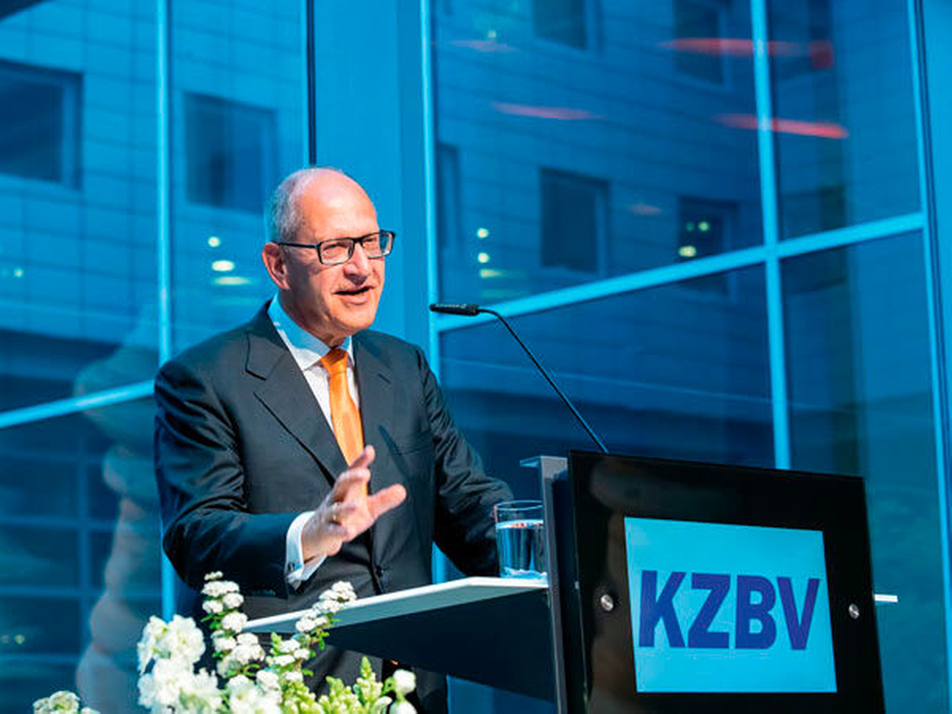 Der KZBV-Vorsitzende Dr. Wolfgang Eßer betonte den Gestaltungsanspruch der KZBV, die Weichen für eine qualitativ hochwertige, wohnortnahe und flächendeckende Versorgung zu stellen. Er bot dem Minister dieaktive Unterstützung der KZBV dabei an, Rahmenbedingungen zu schaffen, um auch künftig den Sicherstellungsauftrag der Vertragszahnärzteschaft erfüllen zu können. Hierzu forderte er: „Die zahnärztliche Versorgung benötigt und verdient eigenständige Steuerungselemente und gesetzliche Lösungen.“ Als Bedrohung für die flächendeckende wohnortnahe Versorgung nannte Eßer reine Zahnarzt-MVZ: „MZVhaben im zahnärztlichen Bereich nur dann einen Mehrwert, wenn sie fachübergreifend ausgestaltet sind.“ Ein besonderes Anliegen sei der Kampf gegen die Volkskrankheit Parodontitis, so Eßer weiter. Er wies auf das Versorgungskonzept der Zahnärzteschaft für eine moderne Parodontitistherapie hin und bat um politische Unterstützung bei der Umsetzung. Gut aufgestellt sieht Eßer die Zahnärzteschaft für die Digitalisierung des Gesundheitswesens. Als technikaffiner Berufsstand wolle man die Chancen der Digitalisierung nutzen.