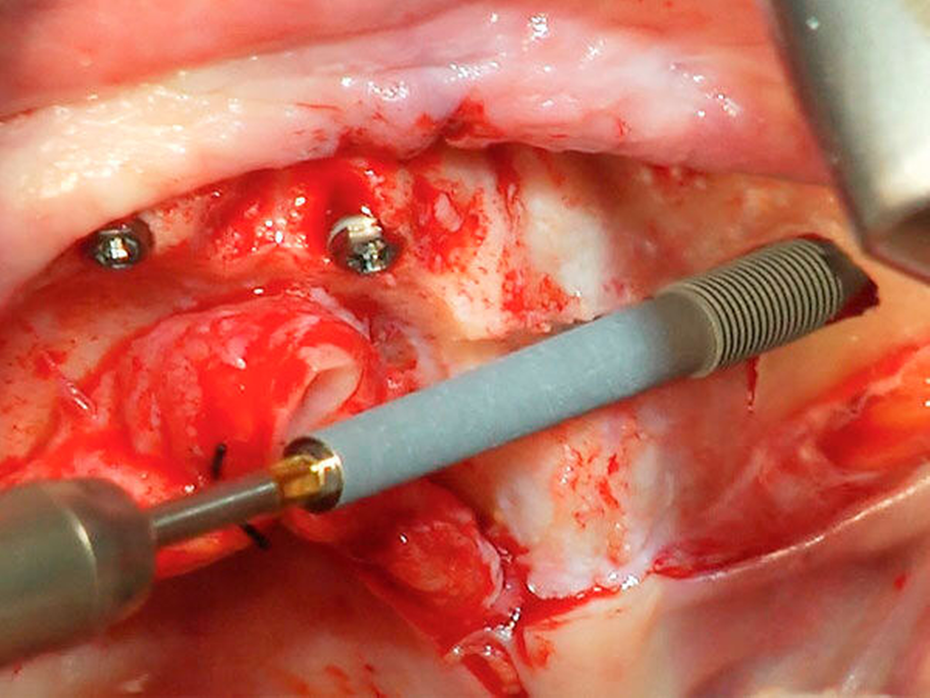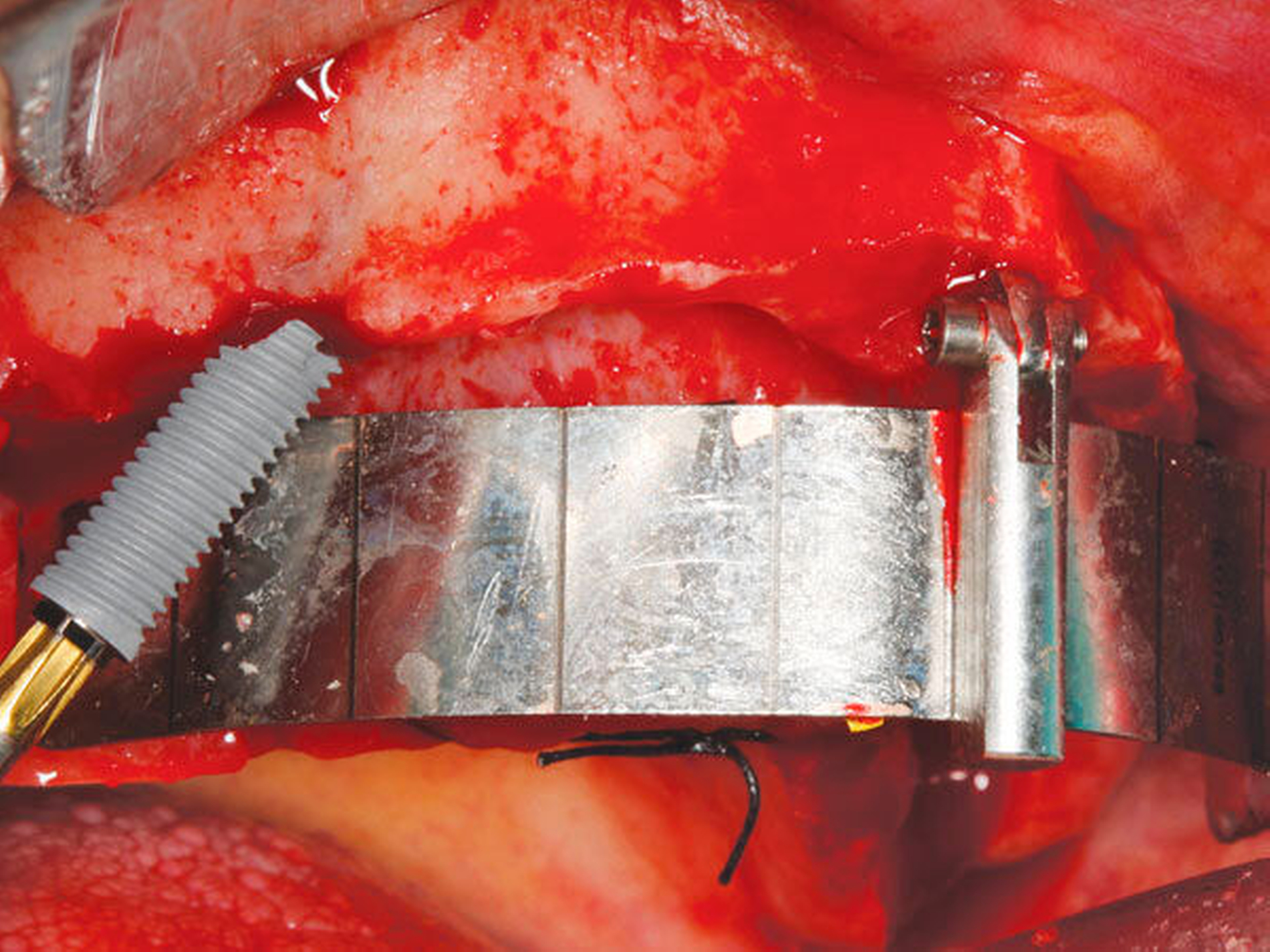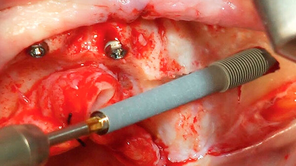 Die notwendige Primärstabilität wird durch Anpassung der Bohrsequenz an die Knochenqualität erreicht. Eine primäre Stabilität von mindestens 30 Ncm bei mindestens drei Implantaten ist laut unserem Protokoll Voraussetzung für eine Sofortversorgung mit einer festsitzenden Brücke. Liegt das vierte Implantat im Frontbereich und erreicht keine 30 Ncm, kann bei sehr guter Stabilität der anderen Implantate (40 bis 50 Ncm) eine Sofortversorgung durchgeführt werden. Liegen diese Voraussetzungen nicht vor, muss zweizeitig vorgegangen werden.