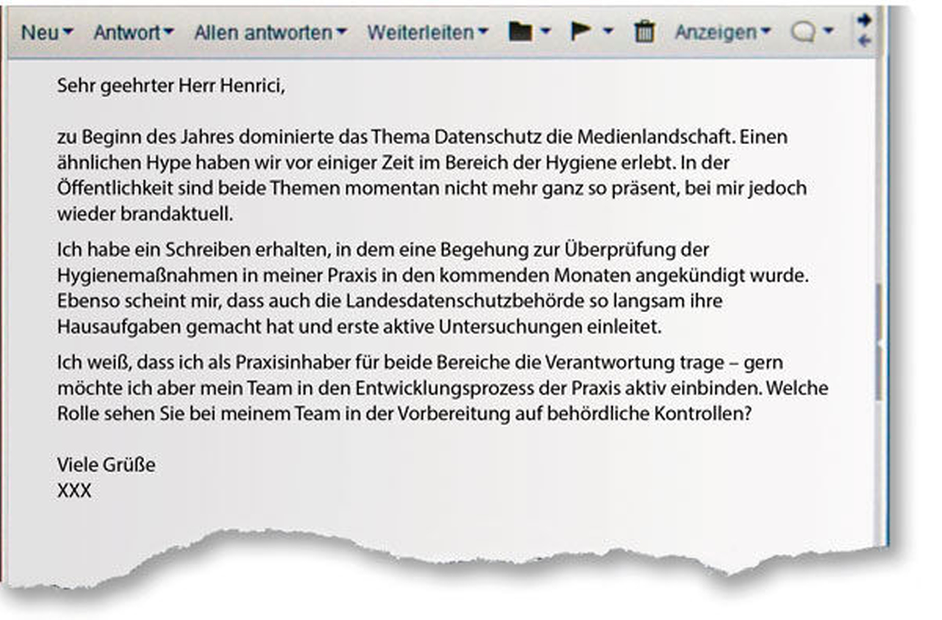 Gern verweise ich hier auf die zm 4/2018, in der sich intensiv mit den Vorkehrungen zum Datenschutz auseinandergesetzt wurde.
