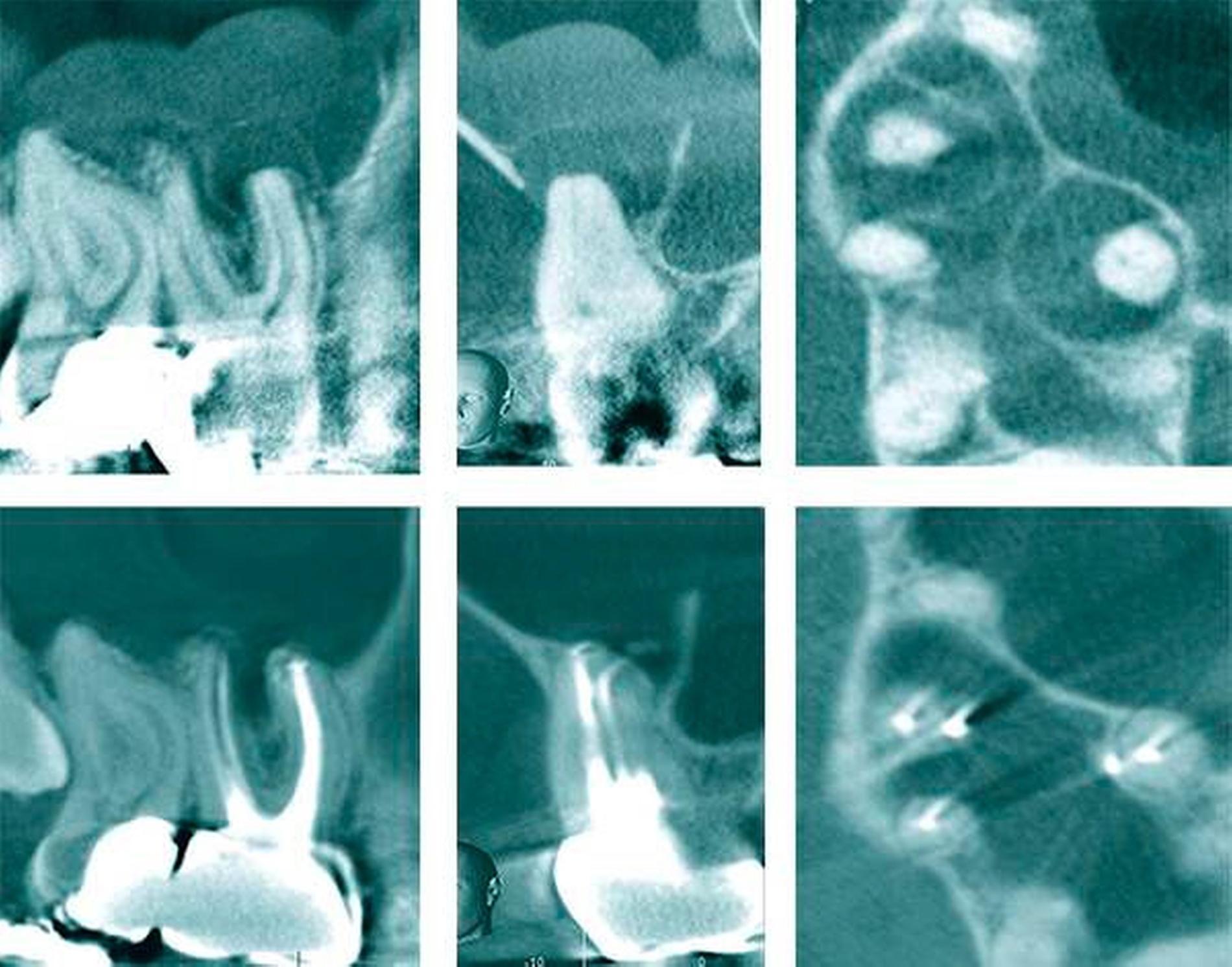 Die Auseinandersetzung mit der bisweilen sehr komplexen Anatomie des Wurzelkanalsystems soll den Zahnarzt keineswegs entmutigen – im Gegenteil: Mit mehr Wissen und Erfahrung können auch schwierige Fälle erfolgreicher therapiert werden. Die dreidimensionale Darstellung des Wurzelkanalsystems mithilfe der Computertomografie führt zu einem besseren Verständnis einer komplexen anatomischen Struktur und ermöglicht die Entwicklung neuer minimalinvasiver Behandlungstechniken. Die Indikation zur Anfertigung einer dentalen DVT-Aufnahme ist jeweils individuell zu bestimmen und orientiert sich am Nutzen für den Patienten [Schulze et al., 2013]. Präoperative DVT-Aufnahmen erhöhen die diagnostische Sicherheit und beeinflussen signifikant die Therapieentscheidung [Mota de Almeida et al., 2014]. Das Ermitteln der tatsächlichen Wurzelform und möglicher tiefer Aufzweigungen von Wurzelkanälen kann dann den Erfolg der Therapie positiv beeinflussen, wenn gleichzeitig die Informationen aus der dentalen DVT mit einer optischen Vergrößerung (Lupenbrille 6x oder Dentalmikroskop) am Patienten wieder aufgefunden werden können.