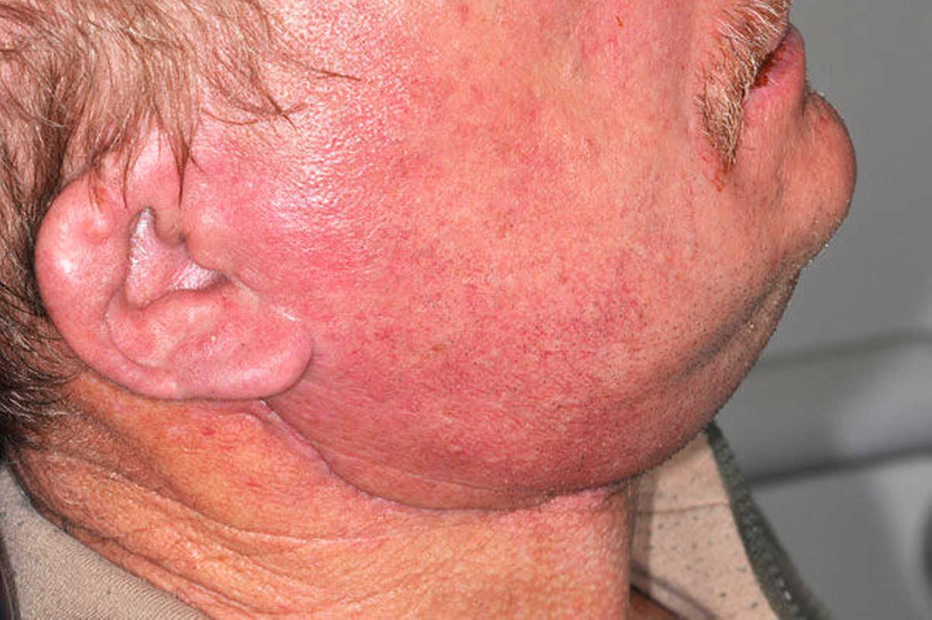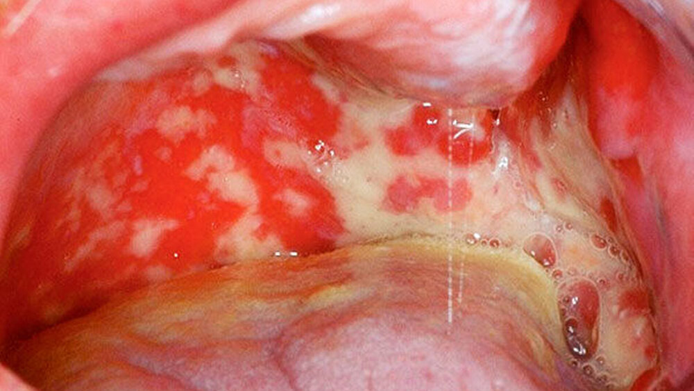 Die Radio- und Chemotherapie sind Eckpfeiler moderner onkologischer Therapiekonzepte. Während die Chemotherapie mit wenigen Ausnahmen immer systemisch verabreicht wird, wird bei einer Radiotherapie zwischen der lokalen (zum Beispiel Bestrahlung eines Lymphabflussgebiets) und der Ganzkörperbestrahlung (zum Beispiel vor einer Stammzelltransplantation) unterschieden. Dabei kann die Radiotherapie sowohl alleine als auch in Kombination mit einer Chemotherapie angewendet werden. Die Vorteile dieser Kombination liegen unter anderem in einer Zytostatika-induzierten Radiosensibilisierung von Tumorzellen sowie im Schluss möglicher therapeutischer Lücken. Dabei werden nach der Intention der Therapie präventive, kurative und palliative Ansätze bei neoadjuvanten und adjuvanten Konzepten unterschieden. Beim oralen Plattenepithelkarzinom, dem häufigsten malignen Tumor der Mundhöhle und einem der zahlenmäßig häufigsten Tumoren weltweit, gehört die adjuvante Radio- beziehungsweise kombinierte Radiochemotherapie – zum Beispiel bei zervikalen Lymphknotenmetastasen – zum leitliniengerechten Therapiestandard (AWMF S3-Leitlinie Mundhöhlenkarzinom). Hinsichtlich der Radiotherapie hat sich mittlerweile die IntensitätsModulierte RadioTherapie (IMRT) mit einer Gesamtdosis von ca. 60 bis 70 Gy etabliert. Bezüglich der Chemotherapie bilden die platinhaltigen Derivate (zum Beispiel Cisplatin, Carboplatin) den Therapiestandard, der im Zweitlinienprotokoll (bei Rezidiven oder Therapieversagen) durch MTX (Methotrexat), Taxane und/oder Cetuximab (EGFR-Antikörper) ersetzt werden kann. Die akuten und chronischen Nebenwirkungen sind vielfältig. Bei der Radiotherapie im Kopf-Hals-Bereich werden zum Beispiel akute Hautirritationen im Strahlenfeld beschrieben (Abbildung 1). Als Langzeitfolgen gelten unter anderem die Xerostomie (Abbildung 2), die Strahlenkaries und die infizierte Osteoradionekrose (Abbildung 3). Bei der Chemotherapie gelten das Zytostatika-induzierte Erbrechen sowie nephro- und neurotoxische Effekte als bekannte Nebenwirkungen. Eine gemeinsame, akute Nebenwirkung ist die Mukositis, die neben der Mundhöhle (orale Mukositis, Abbildungen 4 und 5) die Schleimhaut des gesamten Gastrointestinaltrakts betreffen kann.