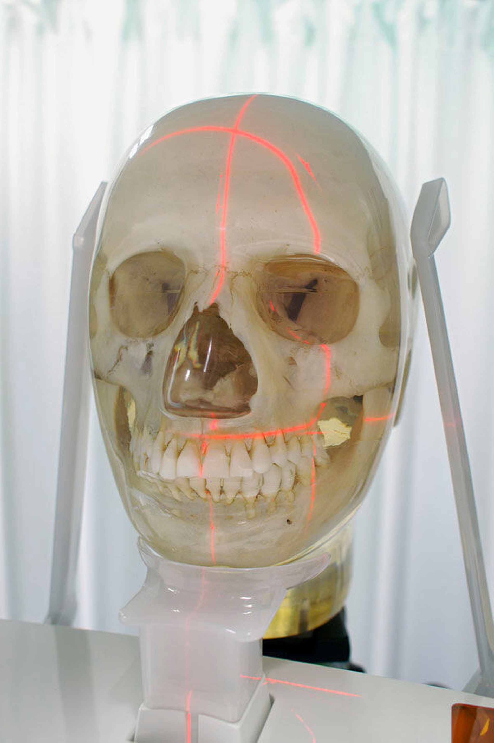 Ob dieses patentierte Verfahren signifikante Verbesserungen bringt, ist nicht bekannt – Studien fehlen bislang. Generell sind nach den Erfahrungen des Autors die frontalen Positionierungshilfen vielfach zu labil und beim Einstellen unpraktisch. Ein bei Ungeübten oft zu beobachtender Fehler ist, dass der Patient nicht entspannt im Gerät steht, weil seine Kopfposition zu viel korrigiert wurde. Das birgt dann die Gefahr, dass der Patient seine Position verändert – bis hin zum Herausziehen des frontalen Aufbisses aus der Halterung. Hier funktioniert die Mensch-Maschine-Schnittstelle schlecht.