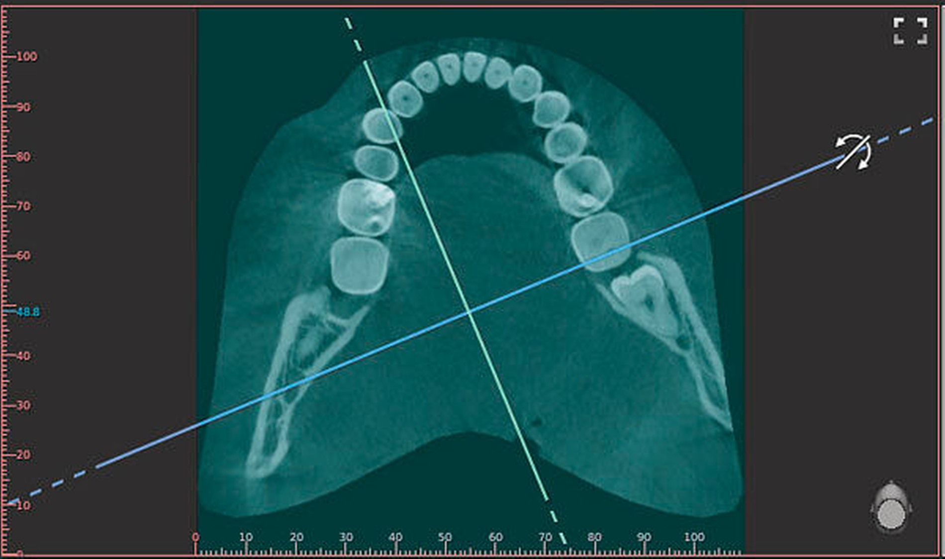 Beides führt am Ende zum gleichen Ergebnis und es bleibt den persönlichen Präferenzen überlassen, welches Prinzip man bevorzugt. Gut ist, wenn Programme beide Optionen haben (Vistasoft von Dürr, Romexis von Planmeca). Vor allem, wenn man gezwungen ist, mit unvertrauten Viewern zu arbeiten, ist das eine wesentliche Erleichterung. Bei dem doch erheblichen Aufwand, ein DVT-Volumen vollständig zu „durchfahren“, um keine Details zu übersehen, ist eine ergonomisch gute Bedienung ein echter Zeitfaktor.