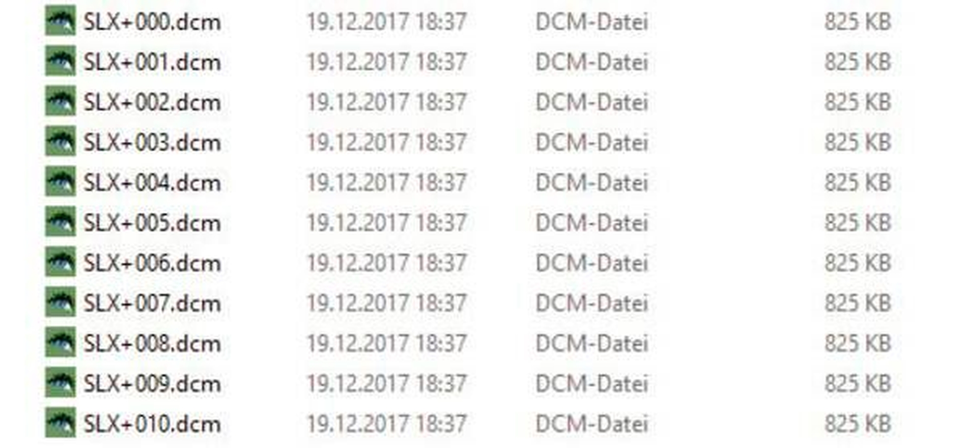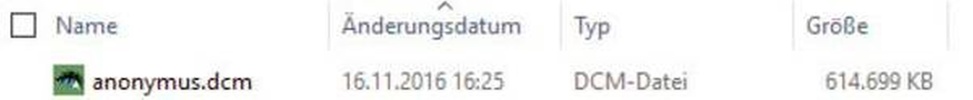 Vor allem DVT-Aufnahmen verursachen beim Export häufig Frust beim Empfänger, weil die Datensätze nicht geöffnet werden können. Woran liegt das? Zum einen an der Art, wie die Daten zusammengestellt werden, zum anderen an den dabei in der Regel mitgelieferten Viewern. Man kann ein DVT als Serien von mehreren Hundert einzelnen DICOM®-Dateien (Dateinamenserweiterung.dcm) abspeichern, sogenannte single-frame-images (Abbildung 13), oder als eine große dcm-Datei (multi-frame image) (Abbildung 14). Die dritte Variante ist das Generieren einer DICOMDIR-Datei, die wesentliche Informationen zum Auslesen der beigefügten Verzeichnisse enthält (Abbildung 15).