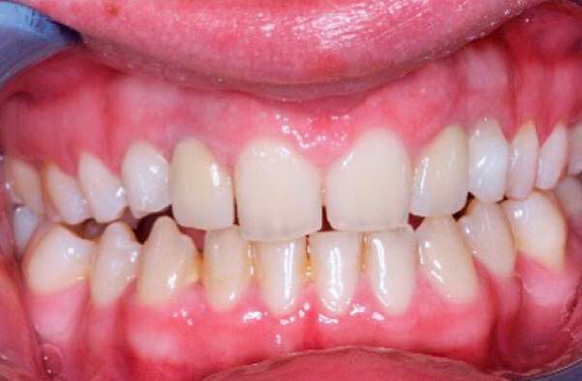 Im Alter von nunmehr 21 Jahren, also elf Jahre nach Milchzahn- und Prämolaren-Transplantation, kam es zu einer klinischen Lockerung der Milchzahn-Transplantate, weswegen unverzüglich eine implantologische Versorgung in regio 12 und 22 eingeleitet wurde. Bei der Extraktion der gelockerten Milchzähne erfolgten alveolarplastische Maßnahmen mit Auffüllung der Extraktionswunden mit Knochenersatzmaterial. Die Implantate wurden acht Wochen nach Alveoloplastik inseriert, die prothetische Versorgung erfolgte 2,5 Monate später (Abbildung 7). Ohne größeren chirurgischen Aufwand konnte ein ästhetisch ansprechendes periimplantäres Lagergewebe geschaffen werden. Die erreichte klinische Bisshebung (Abbildung 7a) kann unter Berücksichtigung des ursprünglichen Fehlens von insgesamt sieben Zähnen im Oberkiefer als sehr zufriedenstellend angesehen werden. Eine weitere Verbesserung der ästhetischen Situation kann im Rahmen der noch notwendig werdenden implantologisch-prothetischen Versorgung erfolgen.