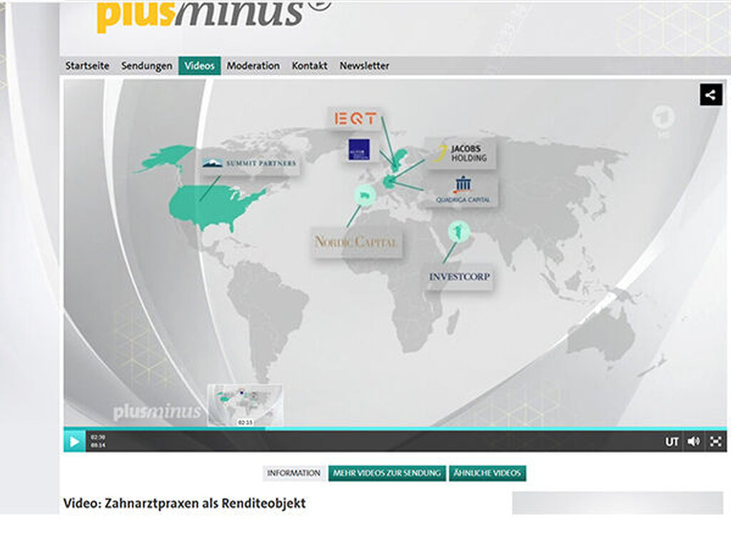 Auf die Nachfrage von Plusminus bei Nordic Capital, inwiefern man dort sicherstellt, dass Behandlungen nicht nach renditeorientierten Aspekten erfolgen, heißt es demzufolge schriftlich: „Das Wohl der Patienten und die Qualität der Versorgung müssen im Mittelpunkt stehen. Wir sind überzeugt davon, dass Verbünde von Zahnarztpraxen eine positive Entwicklung für die Patienten darstellen.“