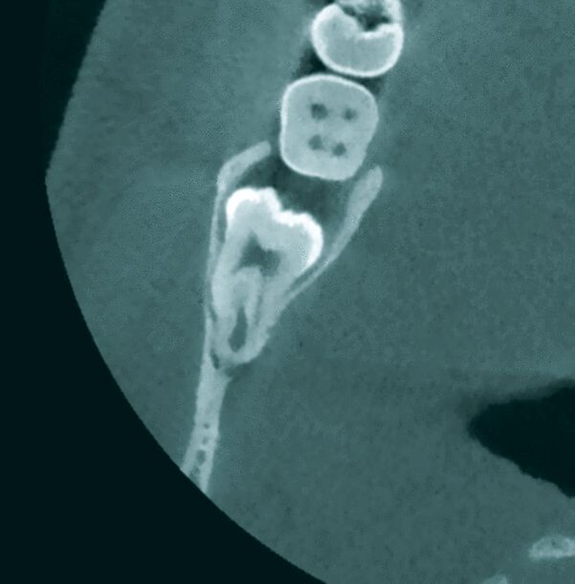 Die Bewertung von Resorptionen an der distalen Radix zweiter Molaren ist durch die Überlagerung mit retinierten Zähnen in der konventionellen Panoramaschichtaufnahme ausgesprochen unsicher. Mit der Ausweitung der DVT-Bildgebung ist zu erwarten, dass Resorptionen an 12-Jahr-Molaren zukünftig häufiger erkannt und in die Entscheidung über eine Weisheitszahnentfernung einbezogen werden müssen. Epidemiologische Daten zur Häufigkeit stehen zwar noch aus, Patientenserien mit einer Prävalenz um 20 Prozent bei horizontal und mesioangulär inklinierten dritten Molaren lassen aber erwarten, dass der Problematik externer Resorptionen zukünftig ein relevanter Stellenwert in der Therapieentscheidung zukommen wird [Oenning et al., 2014; Oenning et al., 2014; Wang et al., 2017]. Bei Resorption an der distalen Wurzel des 12-Jahr-Molaren wäre beispielsweise eine Entfernung oder gegebenenfalls kieferorthopädische Einstellung des ursächlichen Weisheitszahns möglich.