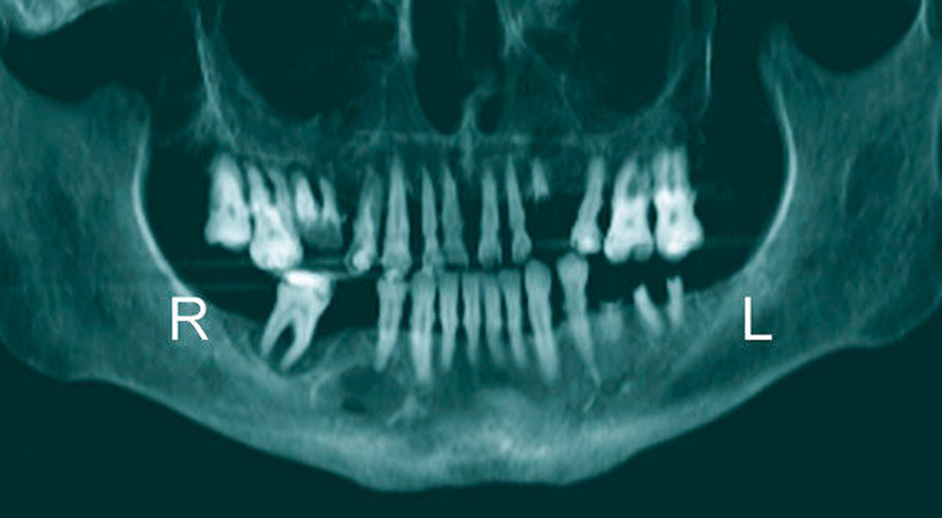 Der Patient gab an, dass er wegen Schmerzen und Schluckbeschwerden seit Tagen nicht mehr essen und trinken könne. In der klinischen Untersuchung imponierte eine massive Schwellung und Rötung des gesamten anterioren und lateralen Halses. Der Zahnstatus war klinisch mit multiplen zerstörten Zähnen und Wurzelresten desolat (Abbildung 1).