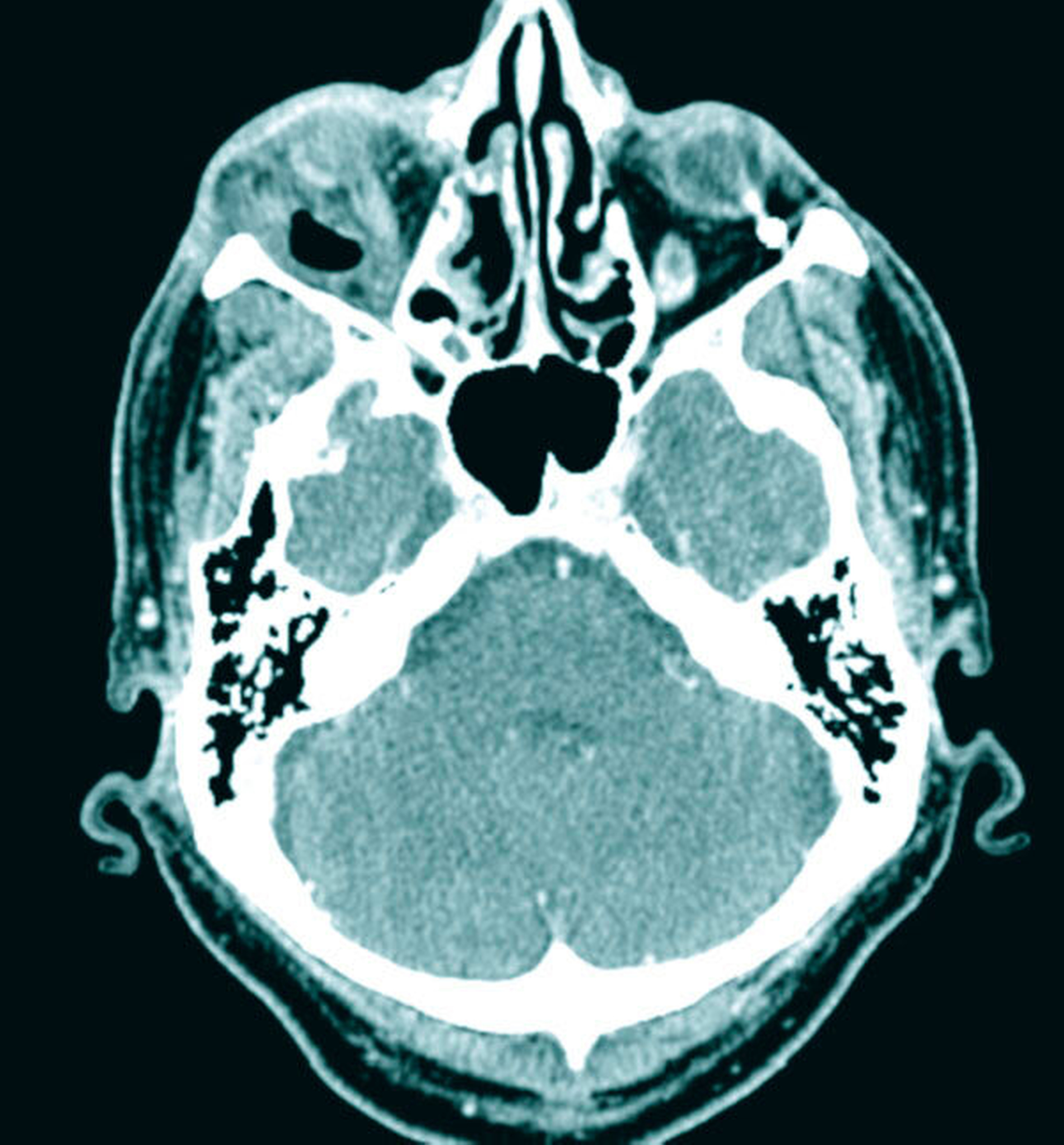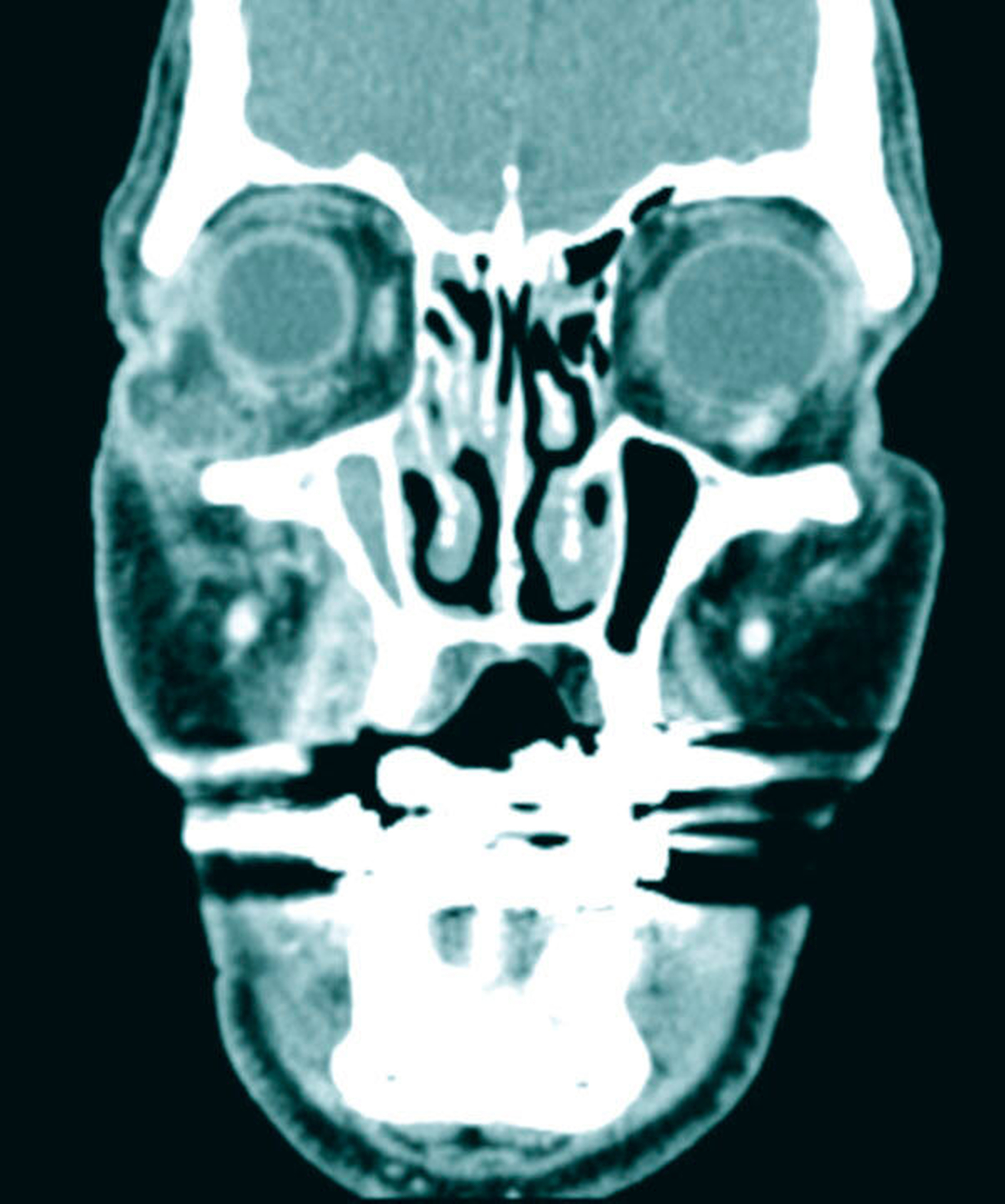 Ein 50-jähriger männlicher Patient stellte sich mit Überweisung aus der Klinik für Augenheilkunde in unserer Notaufnahme vor. Grund der Vorstellung war eine seit fünf Tagen bestehende, zunehmende Schwellung periorbital und an der Wange rechts. Ein Trauma war nicht vorausgegangen. Vor einer Woche hatte sich der Patient bei einem niedergelassenen Mund-, Kiefer- und Gesichtschirurgen ein vor über zehn Jahren inseriertes Implantat aus dem rechten Oberkiefer entfernen lassen. Als er nach der Operation geschnäuzt hatte, war die Schwellung periorbital erstmalig aufgetreten. Zwei Tage später kamen eine starke Diplopie und eine eitrig phlegmonöse Infektion der Orbita hinzu. Wegen dieser Beschwerdesymptomatik stellte sich der Patient in der hiesigen Augenklinik vor.