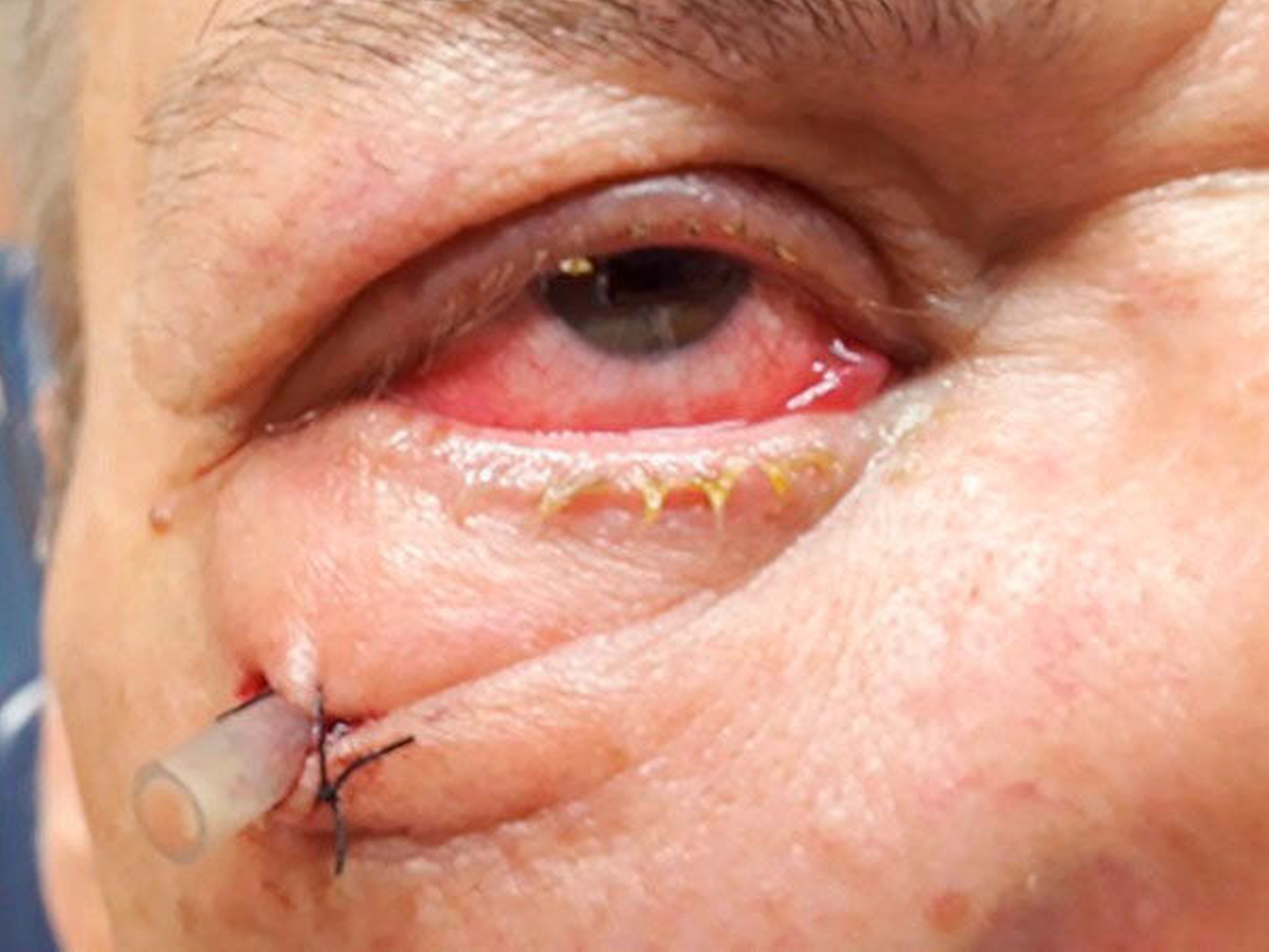 Der postoperative Verlauf zeigte sich insgesamt regelrecht. Nach sechs Tagen stationärer Betreuung konnte der Patient entlassen werden. Die Entfernung des Nahtmaterials erfolgte am zehnten Tag postoperativ und die postoperativ durchgeführte augenärztliche Untersuchung zeigte eine nun wieder unauffällige Motilität, die Visusrehabilitation (von 0,1 auf 0,16 bei bekannter Amblyopie) sowie einen normalisierten Augeninnendruck. Auch sechs Wochen nach Erstvorstellung waren die Wundverhältnisse regelrecht.