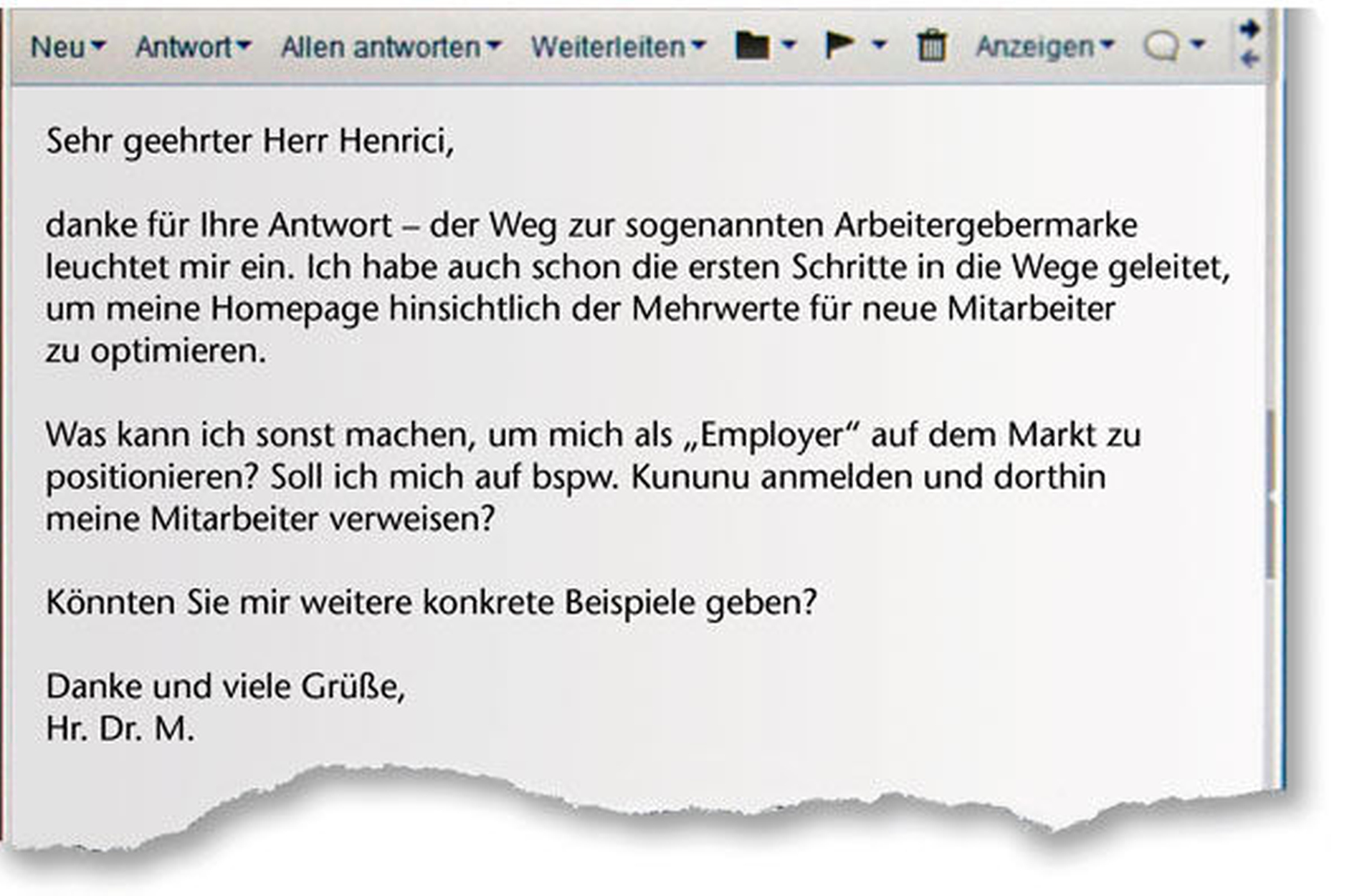 Die grundlegende Voraussetzung für eine als positiv wahrgenommene Arbeitgebermarke ist ein bestehendes harmonisches Arbeitsumfeld beziehungsweise die Schaffung bestmöglicher Arbeitsbedingungen. Nur in einem harmonischen Team werden sich Mitarbeiter so wohlfühlen, dass eine langfristige Bindung an die Praxis erreicht werden kann und gleichzeitig eine effiziente Arbeitsumgebung geschaffen wird. Und dies sorgt wiederum dafür, dass sich die Mitarbeiter positiv über die Praxis als Arbeitgeber äußern und stolz dahinterstehen. Beginnen Sie also damit, Ihre Praxis als Arbeitsstelle zu hinterfragen, versetzen Sie sich in die Lage des Mitarbeiters und überlegen Sie, welche Benefits Sie überzeugen würden, um bei Ihnen arbeiten zu wollen.