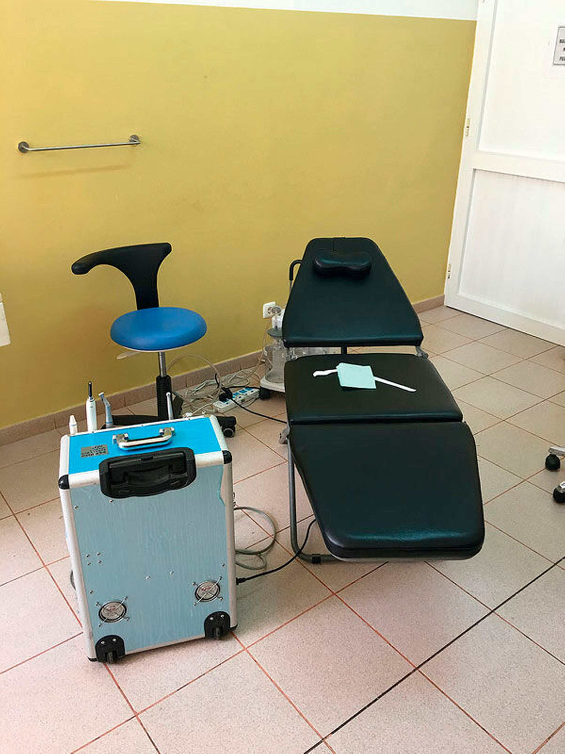 Auf unsere Nachfrage, ob jemand die Einheiten in Gang bringen könne, erfahren wir, dass es für alle Inseln einen einzigen Techniker gibt, der sei nun aber gerade auf einer anderen Insel. Glücklicherweise erscheint er am nächsten Tag, um die einzige einigermaßen funktionierende Einheit in Augenschein zu nehmen. Wir haben mehrere blaue Winkelstücke, jedoch nur eine funktionierende Turbine. Die zweite vorhandene macht ein – sagen wir mal – ungesundes Geräusch bei der Betätigung. So müssen wir heute und auch in den folgenden Tagen mit nur einem Behandlungsstuhl und nur einer funktionierenden Einheit zurechtkommen.