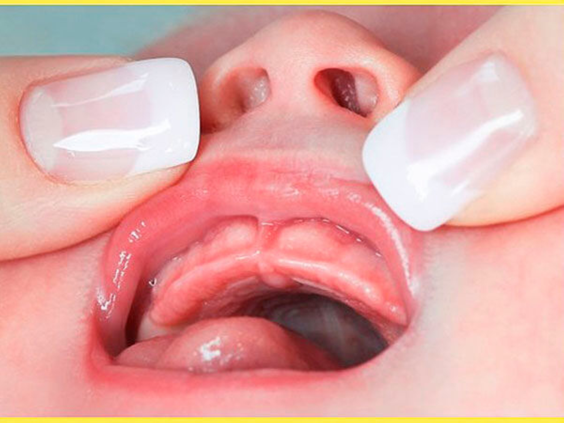 Das Anschauen des Oberkieferlippenbändchens ist Pflicht (Abbildung 2). Zum einen lernen die Eltern so das Hoch- beziehungsweise Wegschieben der Lippen (Abbildung 2), damit sie die Zähne, die sie später putzen sollen, sehen können. Nur unter Sicht können Eltern den Zahnbelag am Zahnfleischrand und später in den Zahnzwischenräumen beseitigen. Zum anderen soll sich das Kind an das Hochschieben gewöhnt haben, bevor der erste Zahn im Kindermund erscheint.