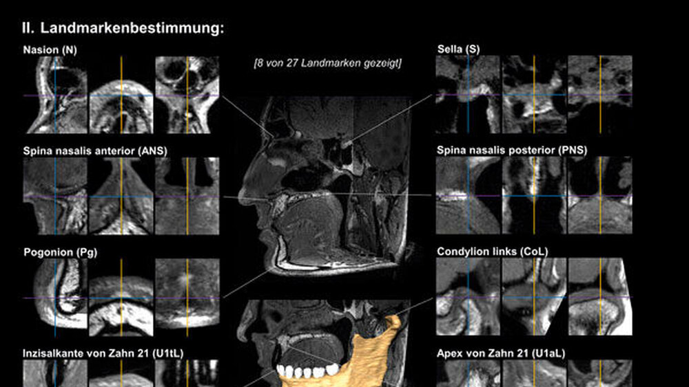 „Durch intensive Grundlagenforschung ist es uns nun gelungen, diese Hürden zu überwinden. Wir konnten eine neue Prototyp-Sequenz für die 3-D-Kephalometrie etablieren. Diese erlaubt es uns, hochauflösende MRT-Bilder in nur sieben Minuten zu erzeugen“, erklärt Prof. Sabine Heiland, Leiterin der Experimentellen Radiologie am Universitätsklinikum Heidelberg. Die Analyse der akquirierten Bilddaten erfolgt dabei analog zur DVT. Bei der kontinuierlichen Weiterentwicklung des neuen MRT-Verfahrens berücksichtigen die Heidelberger Forscher nicht nur die Aufnahmetechniken, sondern auch die Entwicklung anwenderfreundlicher Softwarelösungen zur Bilddatenanalyse. „Im Rahmen der aktuellen Studie konnten wir ein Software-Tool für die Landmarken-basierte 3-D-Analyse mittels MRT etablieren. Dieses ermöglicht eine zeiteffiziente Bildauswertung ohne komplizierte Nachverarbeitung, analog zum DVT“, erläutert Dr. Alexander Jürchott, ärztlicher Mitarbeiter der Neuroradiologie des Universitätsklinikums Heidelberg und projektverantwortlicher Studienarzt.