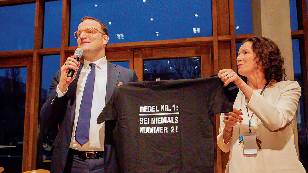 Am Ende der Auftaktveranstaltung wurde Spahn von Cornelia Wanke ein T-Shirt mit der Aufschrift „Regel Nr. 1: Sei niemals Nr. 2!“ überreicht. Und Karin Maag, die gesundheitspolitische Sprecherin der CDU-/CSU-Bundestagsfraktion, erhielt von den Initiatorinnen, die auch von Klas, Fath und Gleissner unterzeichnete Resolution (siehe Kasten). Maag beschrieb das Spannungsfeld zwischen der Forderung einer Quote und der Achtung der Gestaltungsspielräume der Selbstverwaltung und machte zugleich deutlich, dass man in ihrer Fraktion über das Thema Gleichstellung sehr ernsthaft nachdenke. Weitere Veranstaltungen sollen folgen, verkündeten die Initiatorinnen.