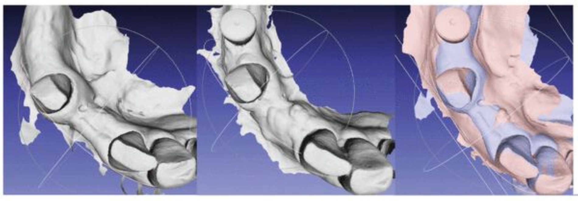 4. Flugge, T., Derksen, W., Te Poel, J., Hassan, B., Nelson, K., & Wismeijer, D. (2017). Registration of cone beam computed tomography data and intraoral surface scans - A prerequisite for guided implant surgery with CAD/CAM drilling guides. Clin Oral Implants Res, 28(9), 1113-1118. doi:10.1111/clr.12925
