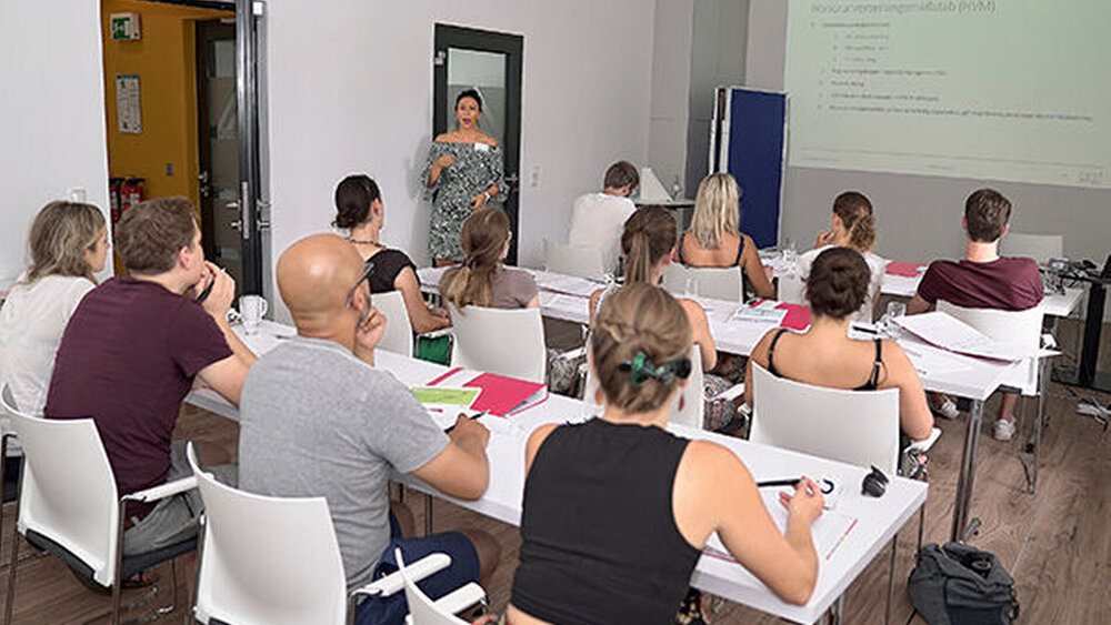 In kleinen Klassen werden sich die Teilnehmer in einem interaktiven Austausch die wichtigsten Schritte für den Start in die Selbstständigkeit selbst erarbeiten. Basiswissen wird in den Themenbereichen „Führung und Personal“, „Businessplanung und Finanzplanung“, „Marketing“, „Organisation“, „Abrechnung“ sowie „Recht und Freiberuflichkeit“ vermittelt.