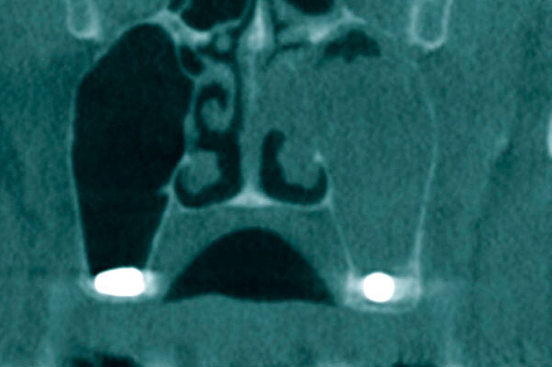 Ein 32-jähriger Mann stellte sich mit einer akut schmerzhaften Sinusitis maxillaris der linken Seite nach Implantation und Augmentation alio loco vor. Der Knochenaufbau im Sinne einer Sinusboden-Augmentation und die Implantatinsertion im Oberkiefer beidseits waren vor circa einem halben Jahr im Ausland durchgeführt worden.