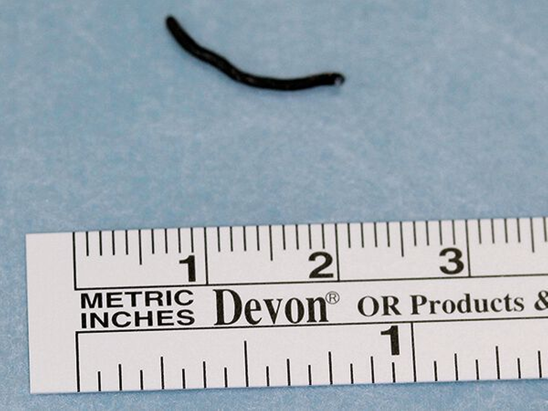 Nach Erörterung der Therapiemöglichkeiten wurde mit dem Patienten die Indikation zur Behandlung getroffen. In Lokalanästhesie erfolgte schließlich die Bergung des Fremdkörpers über einen retromandibulären Zugang (Abbildung 3) mit primärem Wundverschluss. Abbildung 4 dokumentiert den circa 14 mm langen, metallischen Fremdkörper. Die anschließende ambulante Weiterbehandlung verlief komplikationslos.