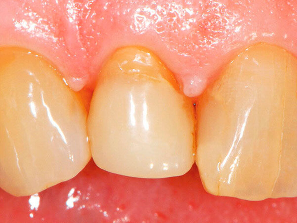 Falls ein Lückenschluss nach Gegenüberstellung der Vor- und Nachteile als angemessen angesehen wird, stellt sich die Frage, mit welchen Hilfsmitteln dies erfolgen soll. Derzeit stehen Implantate und klassische Brückenversorgungen im Vordergrund. Es gibt aber auch etliche nicht- oder minimal-invasive Alternativen, die zum Beispiel bei Einzelzahnlücken in Erwägung gezogen werden können. Dazu zählen unter anderem direkte Verfahren wie Zahnverbreiterungen oder -anhänger (Abbildungen 6 und 7) [Staehle, 2009 und 2012; Staehle et al., 2015]. Zurzeit kommen derartige Maßnahmen nur in Einzelfällen in Betracht, es bedarf noch weiterer Evaluationen, um ihr Indikationsspektrum genauer abgrenzen zu können. Es zeichnet sich aber jetzt schon ab, dass sie ein gewisses Potenzial als frugale Interventionen besitzen. Auch wenn momentan vielfach Implantate favorisiert werden, erscheint es dennoch sinnvoll, wenn die Zahnärzteschaft auch diverse Implantat-Alternativen vorhalten kann. Ungeklärte Probleme periimplantärer Entzündungen [Chrcanovic et al., 2016] und die zu erwartende Diskussion über Beziehungen zwischen periimplantären Entzündungen und der Allgemeingesundheit lassen es als sinnvoll erscheinen, solchen Fragen intensiver als bisher nachzugehen. Bislang wird zwar nur über Einflüsse der Allgemeingesundheit auf den Erfolg beziehungsweise Misserfolg von Implantaten diskutiert. Es ist aber nicht auszuschließen, dass man künftig die Fragestellung in umgekehrter Richtung dahingehend erweitert, inwieweit Implantate ihrerseits nicht nur positiven, sondern auch negativen Einfluss auf die Allgemeingesundheit nehmen können.