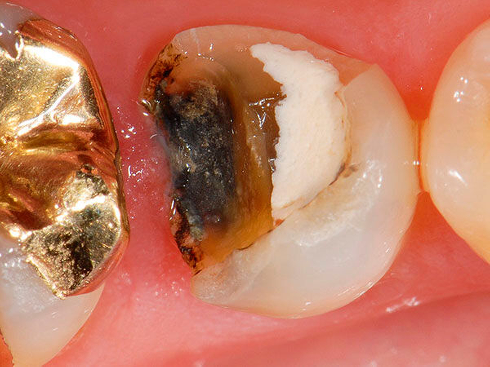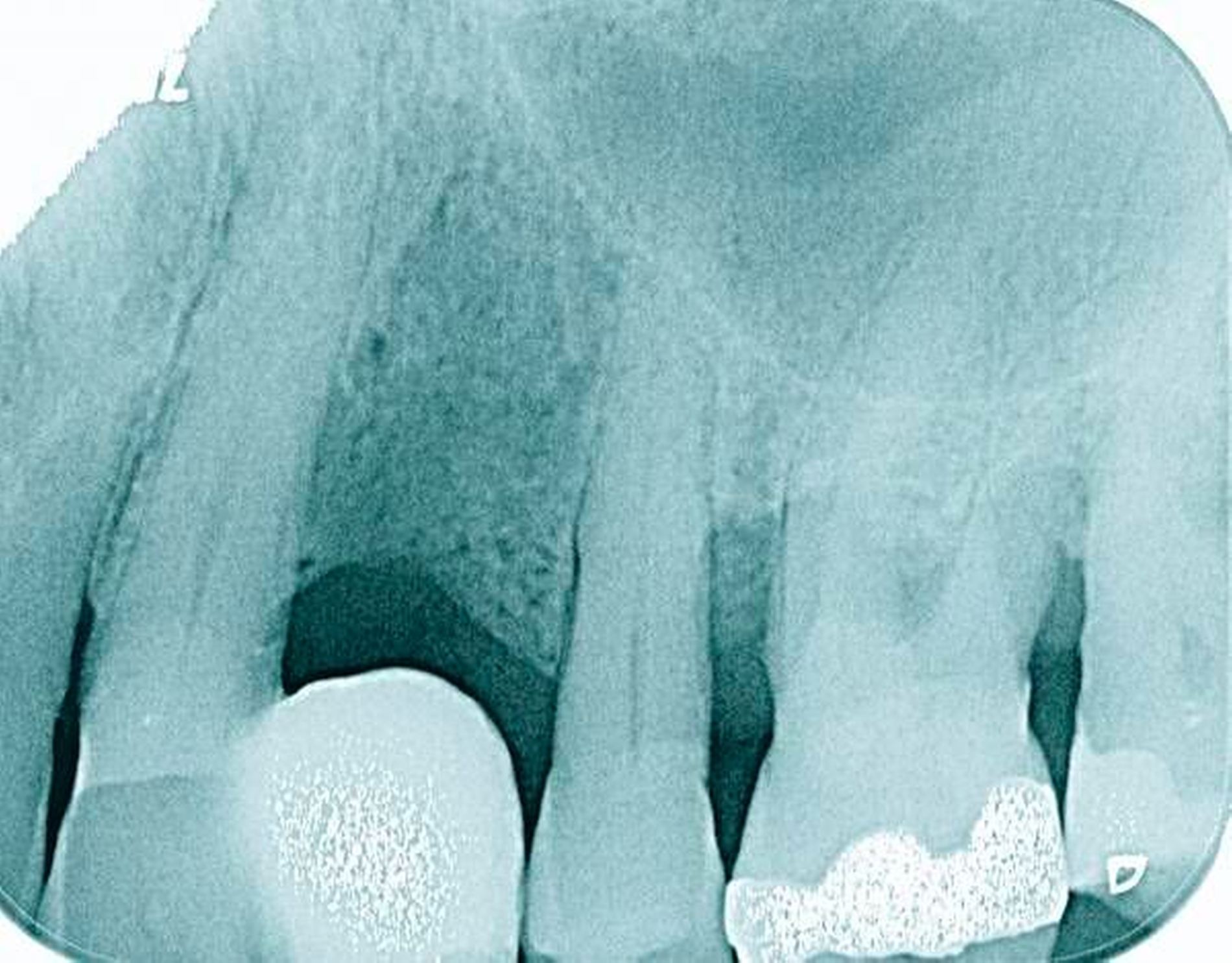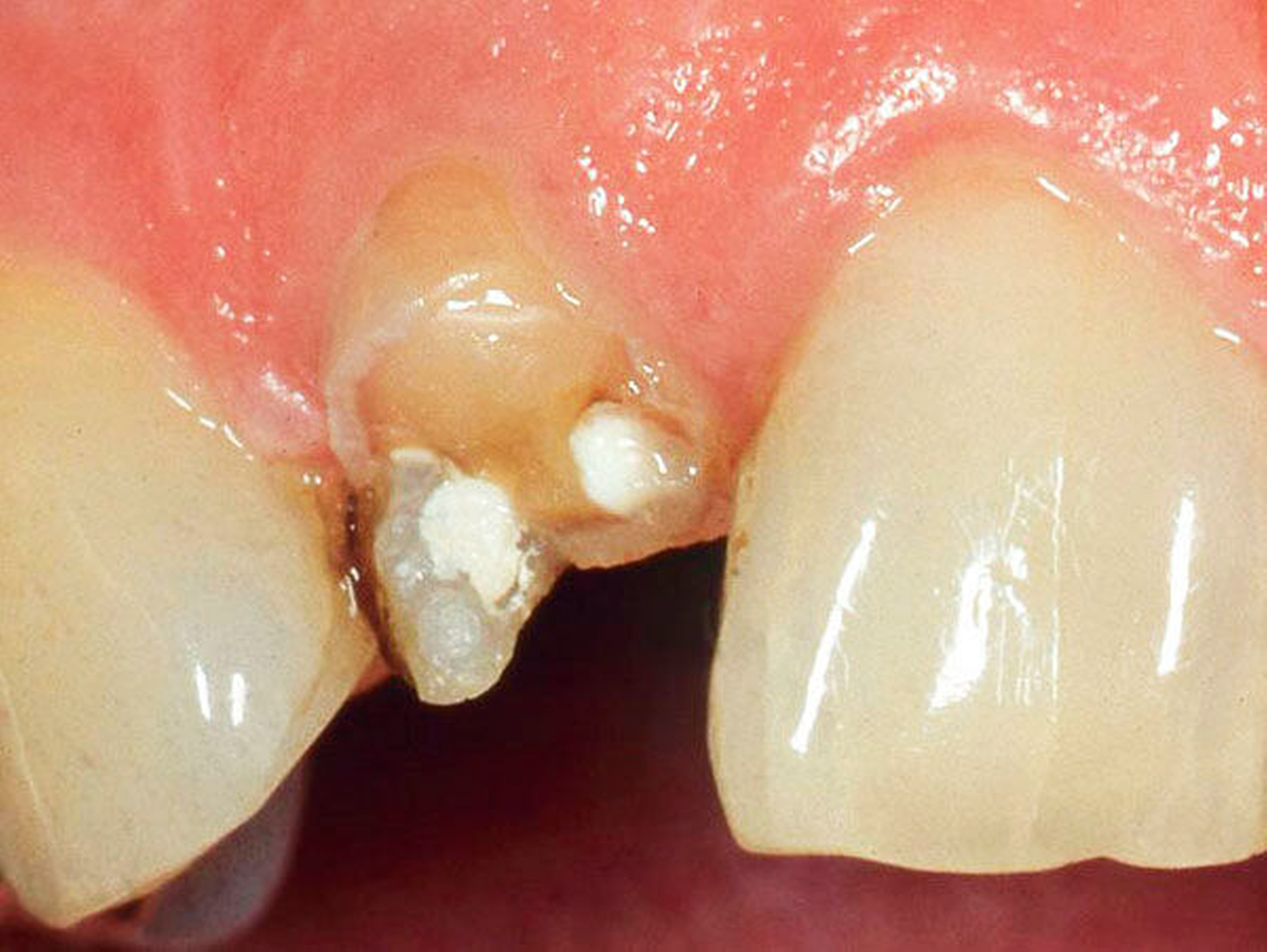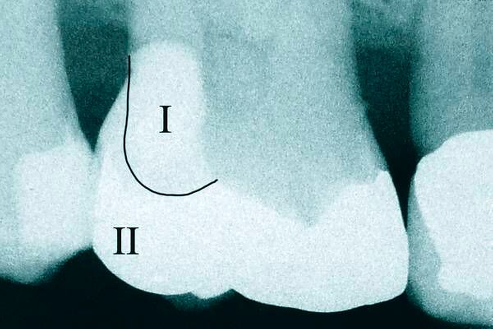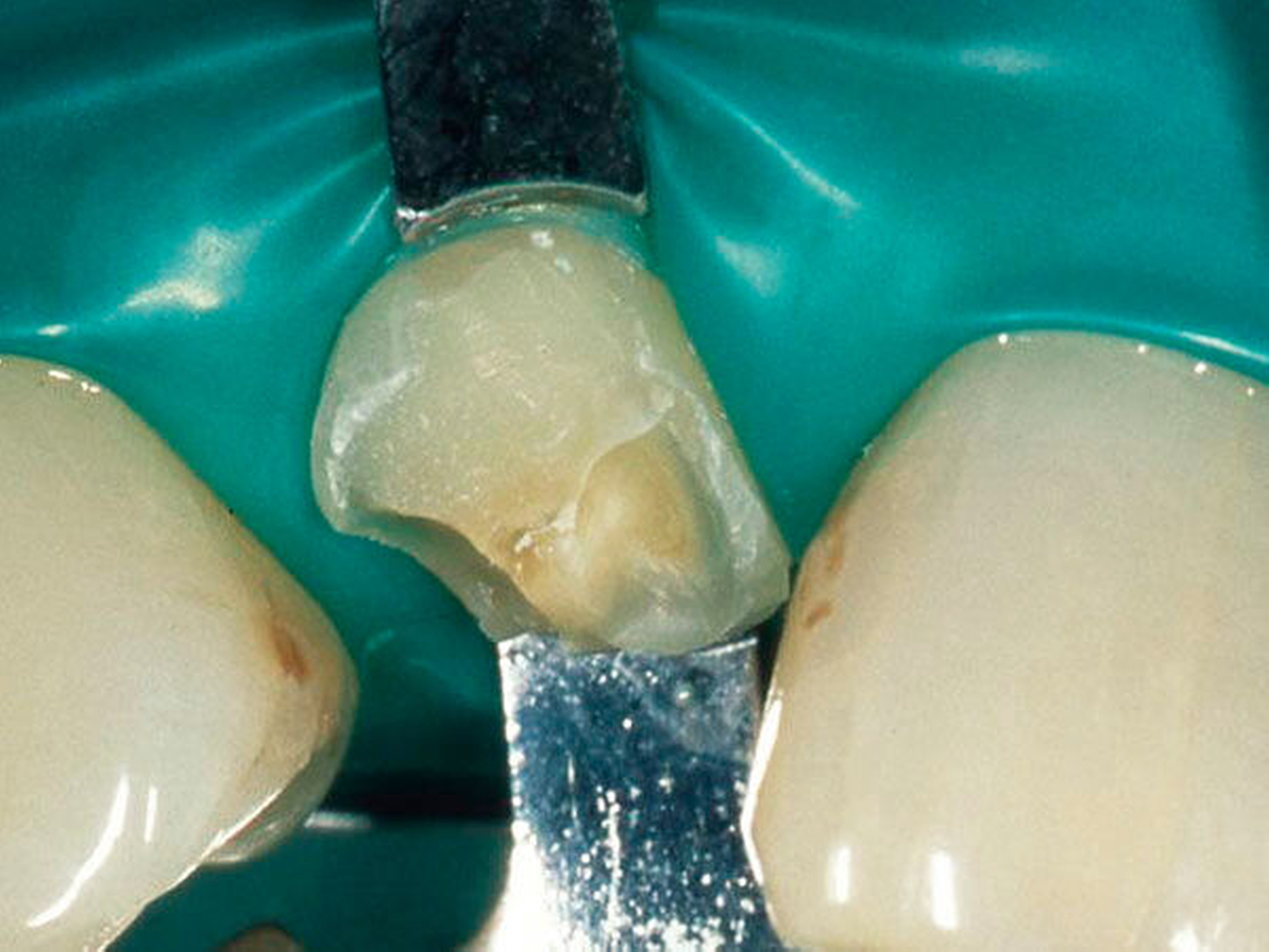 Am Beispiel von Abbildung 1 (stark zerstörte Zahnkrone eines Schneidezahns) kann das Prinzip der frugalen Intervention erläutert werden:
