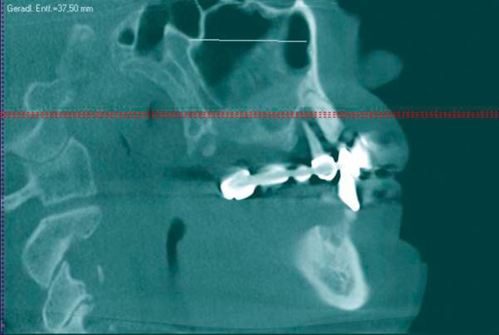 Nach Extraktion der restlichen, nicht erhaltungswürdigen Zähne erfolgte die Entnahme der innerhalb des Sinus maxillaris lokalisierten Polyposa zur histopathologischen Aufarbeitung. Nach plastischer Deckung der Extraktionsalveolen wurde der Patient zwei Tage postoperativ unter intravenöser Antibiose geführt und anschließend entlassen. Im Rahmen der direkten Nachsorge sowie in den folgenden Jahren kam es zu keinen Komplikationen.