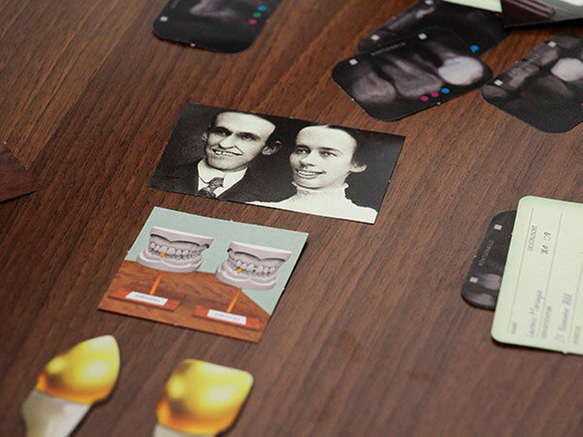 Neben einem Grundriss der Praxisräume im Zwanzigerjahre-Look beinhaltet der erste Umschlag ein detailliertes Zahnschema des Milch- und des bleibenden Gebisses und den Terminkalender von Dr. Siènski. Zuerst sind wir mit unserem zahnmedizinischen Wissen den beiliegenden Hinweiskarten einige Schritte voraus, gefühlt machen wir Zeit gut, weil wir „vom Fach“ sind. Die gewonnene Zeit verlieren wir aber wieder bei der Suche nach Zahn 19 – und müssen nach 30 Minuten schließlich die Lösungskarte zurate ziehen. Überraschend simpel ist dann die Auflösung des ersten Rätsels – da haben wir wohl „zu zahnmedizinisch“ gedacht.