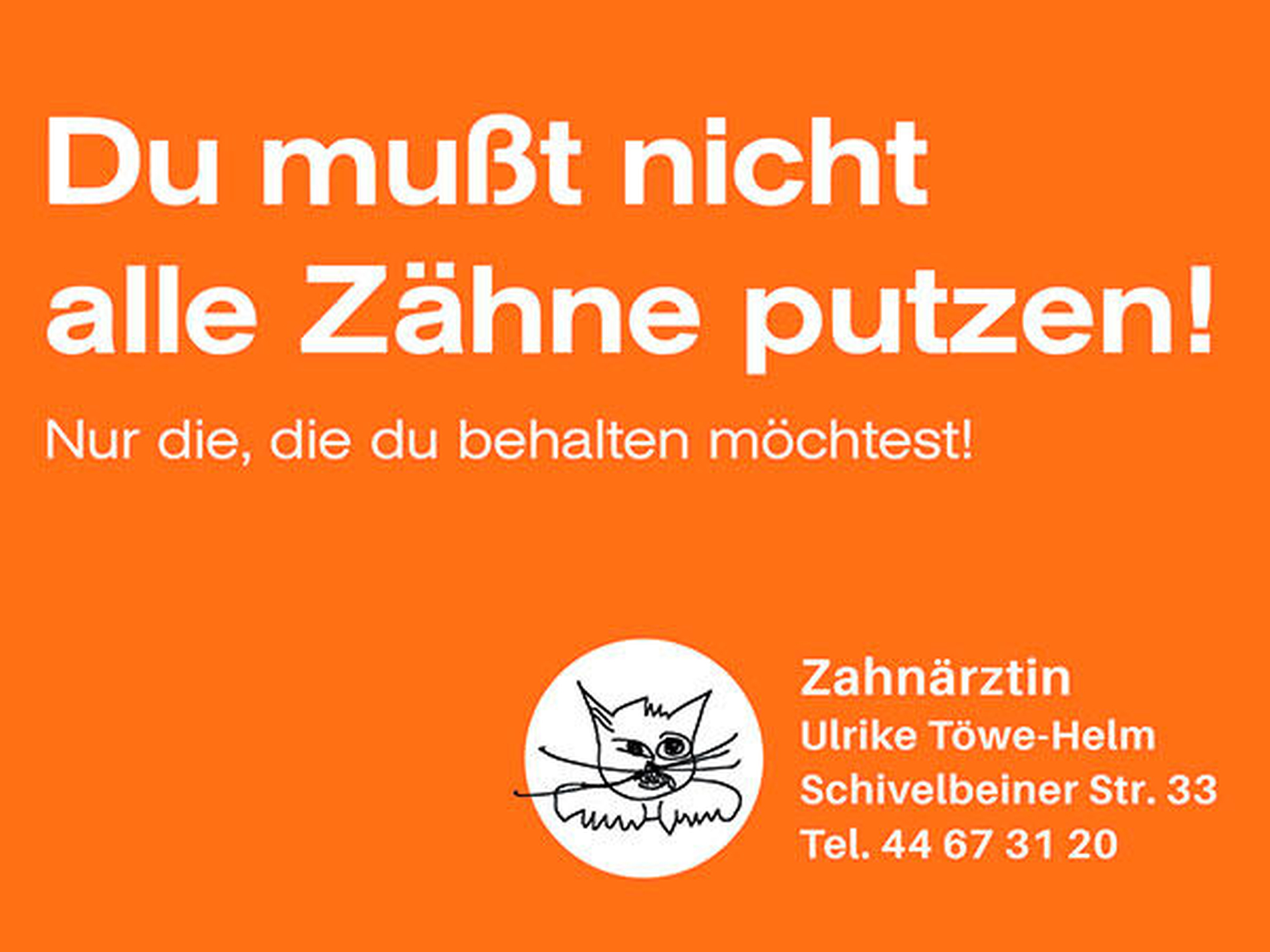 Ein Schmunzeln, ein Spruch, den man sich merkt und der hoffentlich dazu anregt, sich eben alle Zähne zu putzen und regelmäßig zur Kontrolle vorbeizuschauen. Manche Praxen schicken Postkarten an ihre Patienten, mit der freundlichen Erinnerung, dass es mal wieder Zeit für eine Kontrolle ist. Auch hier kann ein flotter Spruch nützlich sein, um Aufmerksamkeit zu wecken.