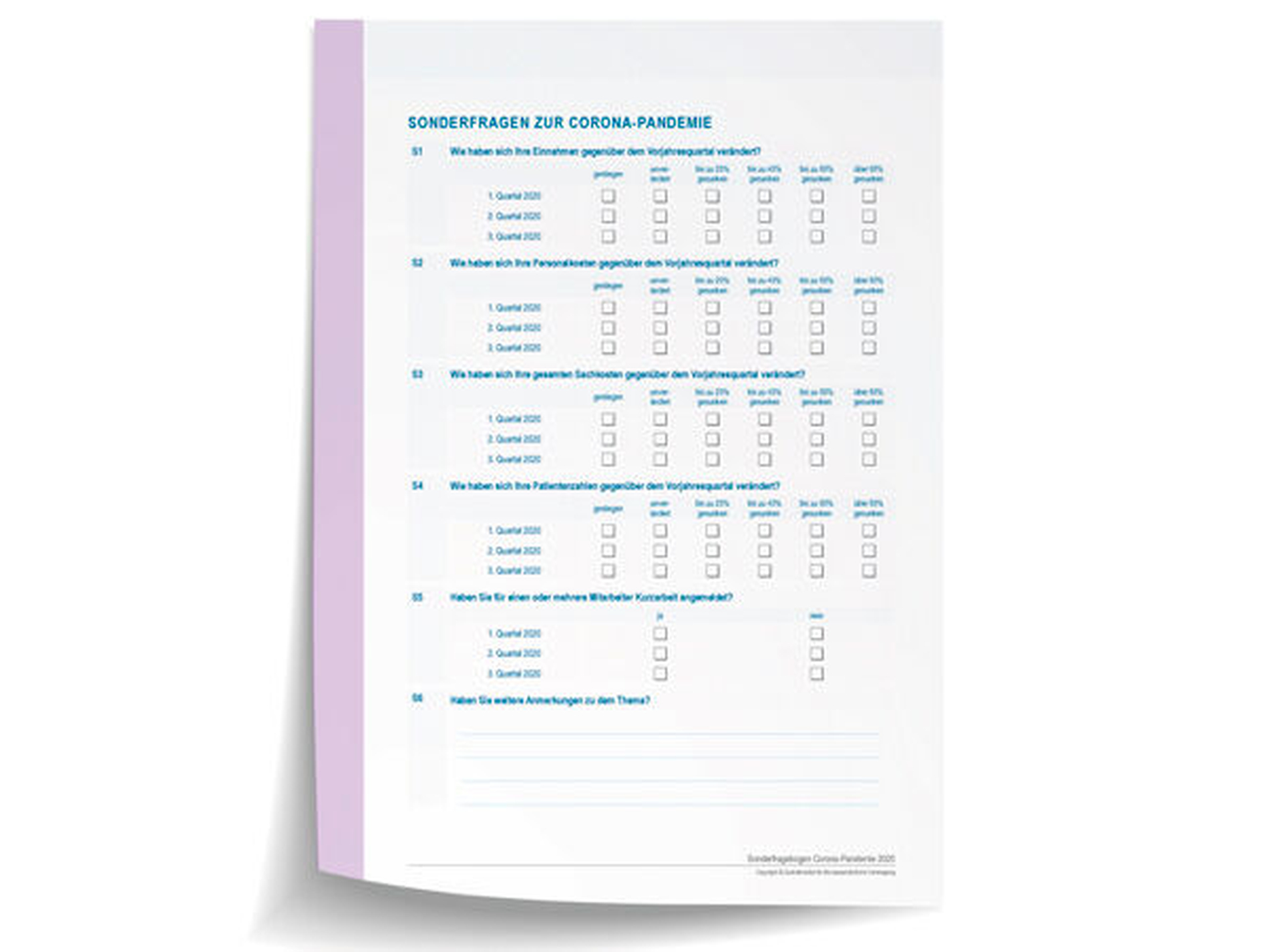 Um zudem das Meinungsbild der Zahnärztinnen und Zahnärzte vor dem Hintergrund der Corona-Pandemie abzufragen, liegt dem Erhebungsbogen in diesem Jahr einmalig ein zusätzliches Blatt mit Fragen zu Ihrer wirtschaftlichen Situation in der Corona-Pandemie bei. Diese Fragen sind nicht Bestandteil der ZäPP-Erhebung, sondern sollen vielmehr ein Stimmungsbarometer des Berufsstands abbilden.