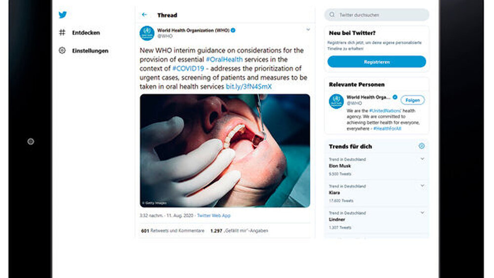 In einer nicht landesspezifischen Empfehlung vom 3. August hatte die WHO dazu geraten, von nicht dringenden Zahnbehandlungen abzusehen, bis die Übertragungsrate von COVID-19 „ausreichend“ gesunken sei. Auch Vorsorgeuntersuchungen und Prophylaxe sollten so lange verschoben werden.