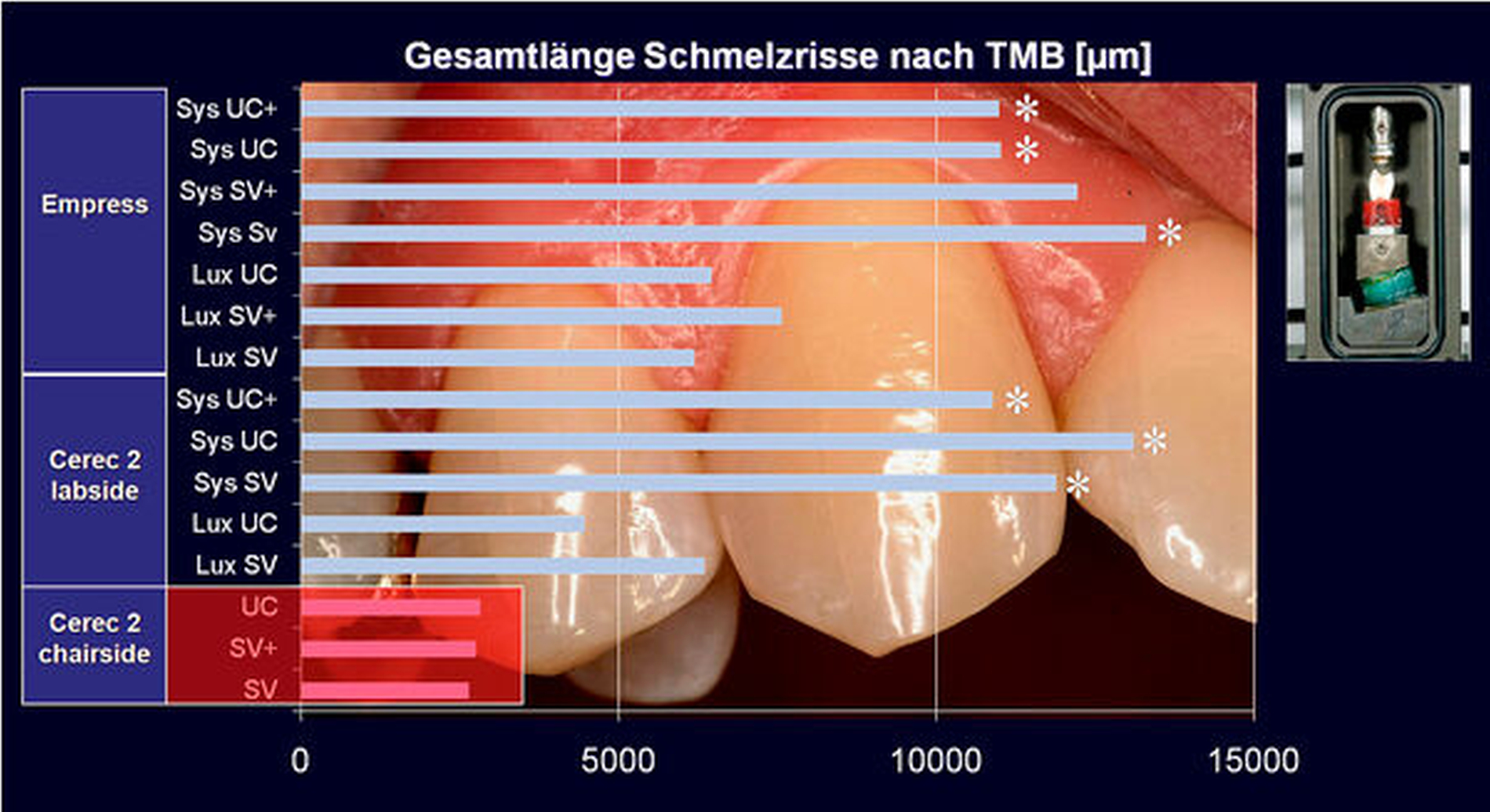 Während mit der Studie von Posselt die (für die damals recht neue Technologie erstaunlich hohe) Erfolgsquote der Restaurationen im Vordergrund gestanden hatte, nahm man anderswo akribisch die Defektqualität in den Blick. Damit ergaben sich Erkenntnisse, die den Zusammenhang von Oberflächendesign, Geometrie, Präparation, Adhäsion und Materialeigenschaften erhellten und den gesamten Workflow nachhaltig beeinflussen und verändern sollten. PD Dr. Andreas Bindl erhielt 2003 einen ersten Preis für seine prospektive Studie zum Zusammenhang von Überlebensraten und Präparationstypen bei CAD/CAM-Seitenzahnkronen aus Feldspatkeramik. Zahnarzt Gergo Mitov nahm 2004 eine Anerkennung für seine „Untersuchungen des unterkritischen Risswachstums am vollkeramischen System Empress 2“ entgegen. Es ging also nicht mehr vorwiegend darum, wie viele Restaurationen Risse aufwiesen, sondern wann sich Risse bildeten, wie sie sich verhielten und welche Kräfte sie ausgelöst haben könnten.