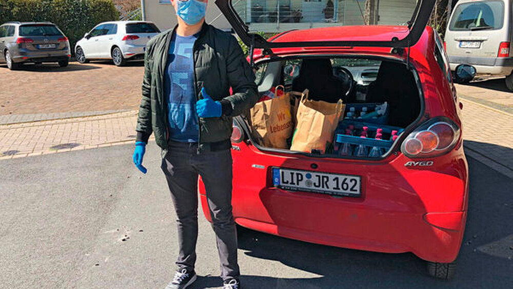 Für seine Hilfe beim Einkauf druckt er Flyer mit seiner Nummer. Die Resonanz ist sehr gut. Die Menschen in Lemgo, die derzeit nicht alleine einkaufen können, danken ihm. Ab und zu sogar mit einem kleinen Geschenk.
