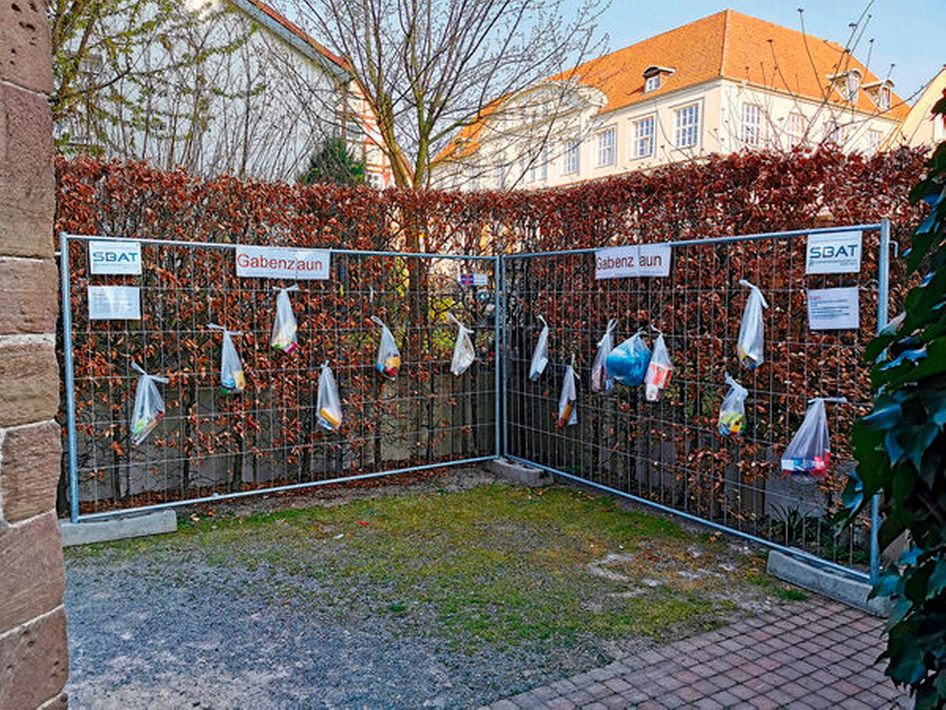 Aber auch der Zaun wird weiter bestückt – und nachgefragt: Nach dem Motto „Jeder gibt, was er kann“ zog Rullmann mit seinem Freund Julien Thiede, Student des Bauingenieurwesens, den Gabenzaun hoch. Das Ordnungsamt hatte nichts dagegen. Die Nachbarschaft unterstützt fleißig. Informiert wird über Facebook.
