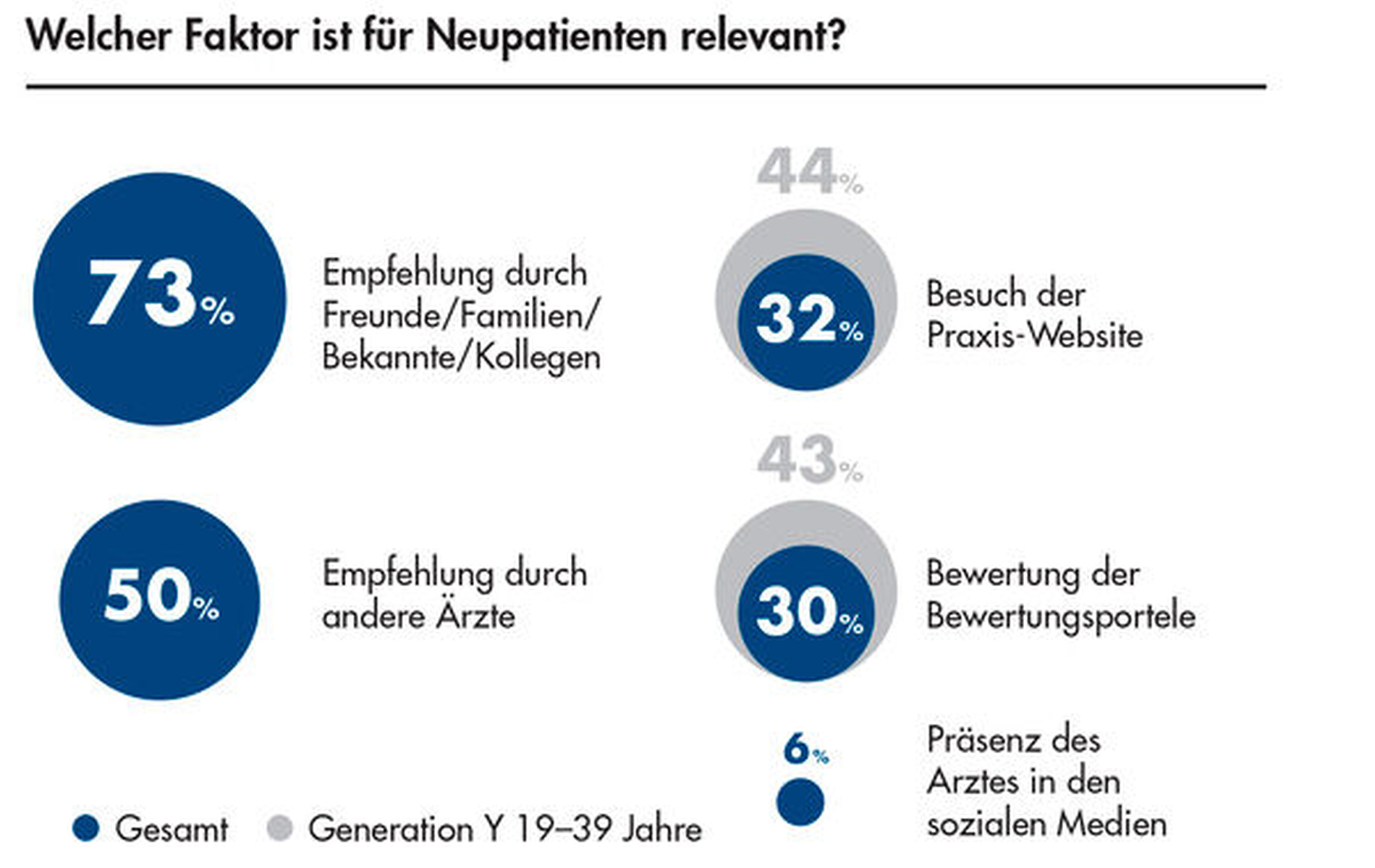 Da aktuell nur ein minimaler Teil der Bevölkerung Dinge im Internet bewertet (Tendenz steigend), ist es wichtig, seine Patienten darüber aufzuklären, dass es diese Optionen gibt. Ob Sie beispielsweise ein Tablet im Wartezimmer mit direkter Bewertungsmöglichkeit bereitstellen, einen Aufsteller mit dem Klassiker „Eine Empfehlung ist für uns das größte Lob“ platzieren oder den Patienten direkt ansprechen, müssen Sie je nach Sensibilität des Patientenstamms für sich entscheiden. Wichtig ist nur, dass Sie das Thema nicht aus den Augen verlieren und sich regelmäßig vergegenwärtigen. Der Patient von heute wünscht sich bereits eine Online-Terminoption und geht immer weiter Richtung Internet – da ist es nur naheliegend, dass auch seine „Mund-zu-Mund-Propaganda“ zunehmend aus dem Web kommt.