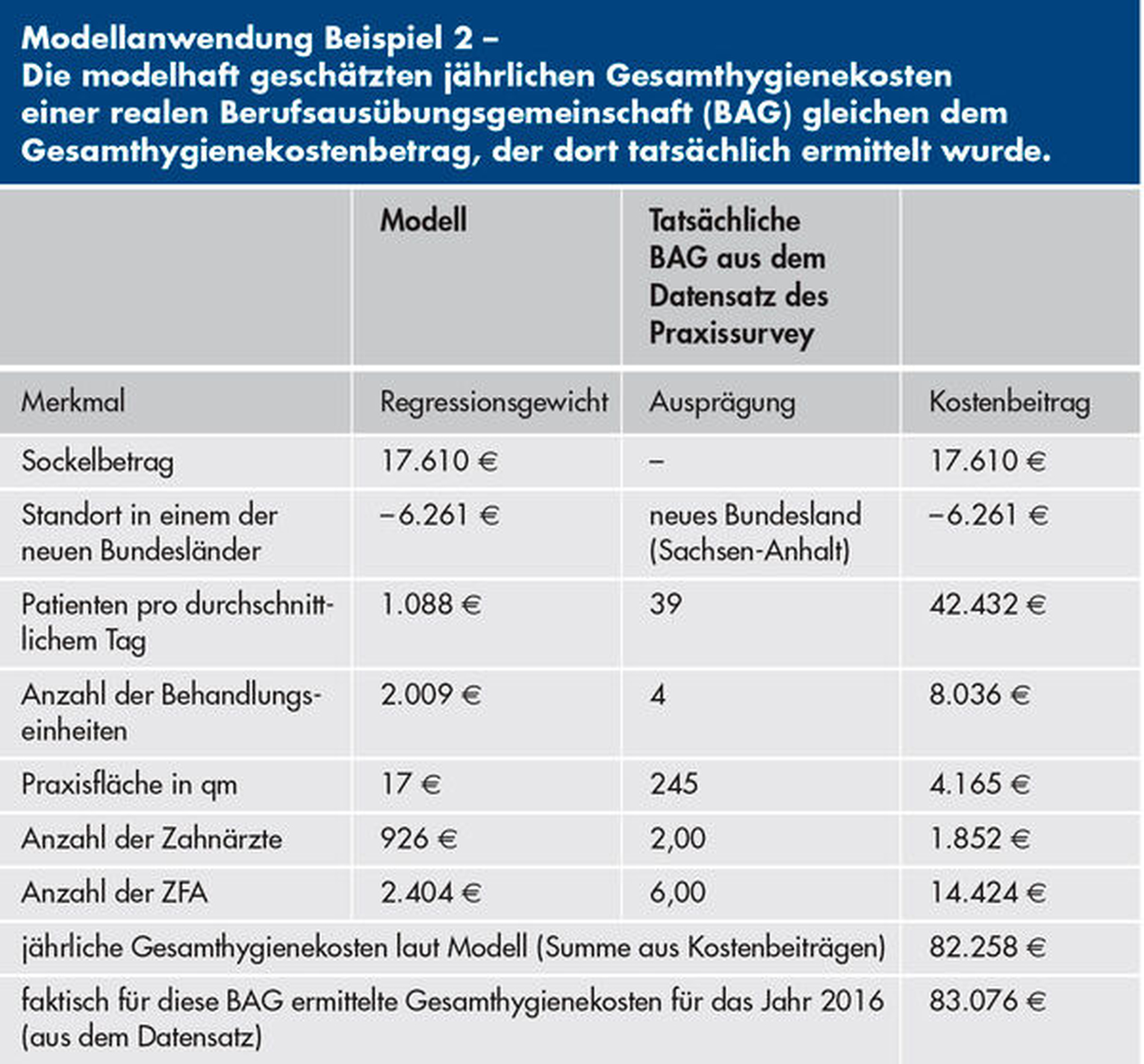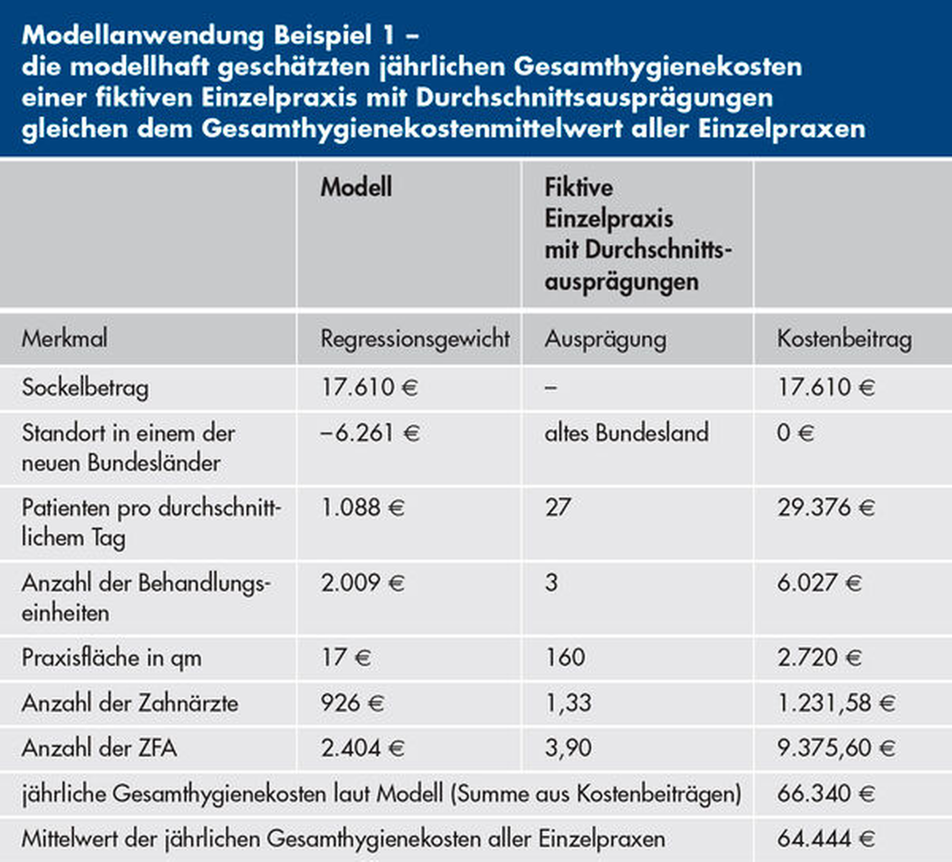 Im Vergleich mit einer nahezu zeitgleich durchgeführten Studie des Zentralinstituts für die kassenärztliche Versorgung (Zi) übersteigen die Hygienekosten einer Zahnarztpraxis die einer Hausarztpraxis um etwa das Zehnfache. Die Hygienekosten einer Zahnarztpraxis erreichen damit das Niveau einer Arztpraxis, die ambulant operiert.