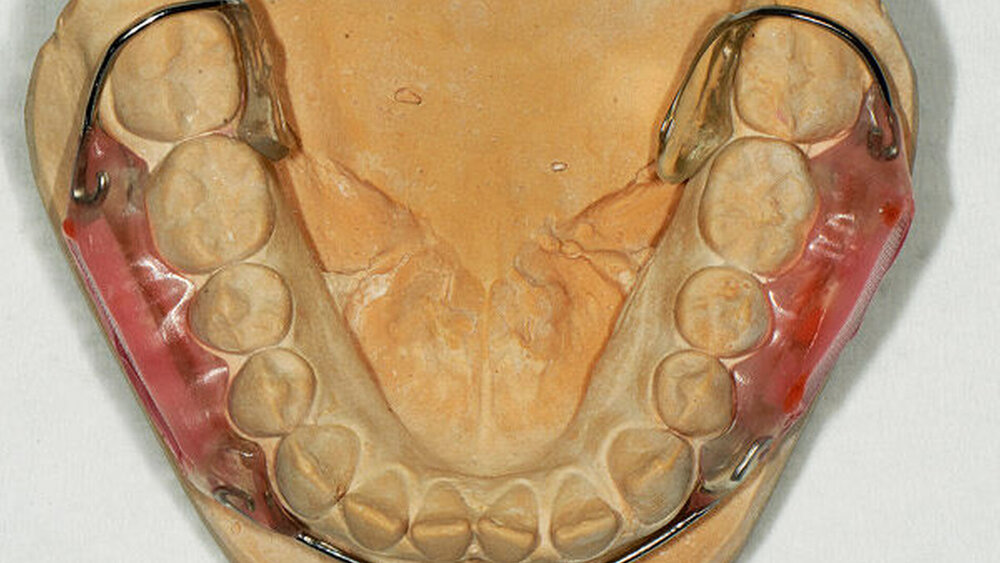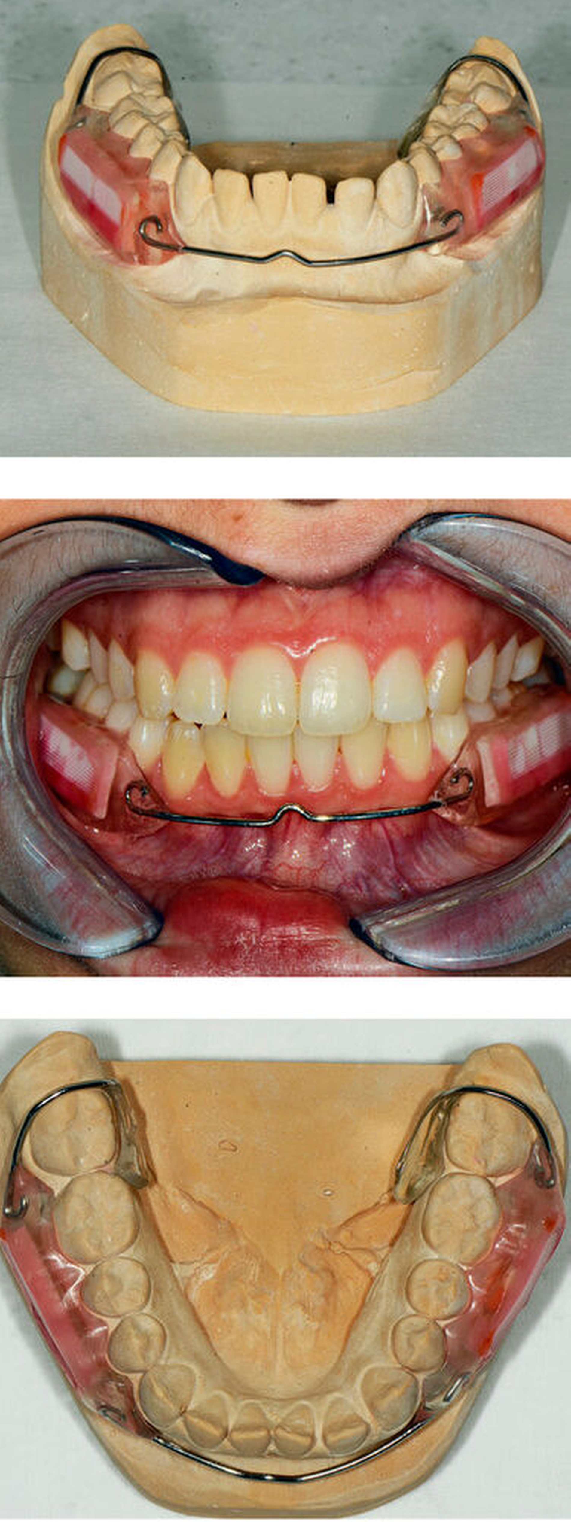In der vorliegenden doppelblinden, randomisierten In-situ-Kreuzstudie wurden intraorale Unterkieferapparaturen für 20 Probanden, die ihr Einverständnis zur Teilnahme (Studienregister: DRKS00011653) gegeben hatten, angefertigt (Abbildung 1). In den beiden Seiten der Apparatur wurden je eine bovine Schmelz- und zwei bovine Dentinproben 1 mm vertieft in das Kunststofffenster unter einem Kunststoffnetz eingebracht, so dass plaquebedeckte Zahnflächen simuliert wurden [Schirrmeister et al., 2007]. Die Schmelz- beziehungsweise Dentinproben enthielten je eine Gesundfläche und eine (stark oder schwach) demineralisierte Läsion. Die 20 Probanden trugen die intraorale Apparatur für vier Perioden jeweils vier Wochen, wobei die Tragezeit nur während der Mahlzeiten und der Mundhygiene unterbrochen wurde.