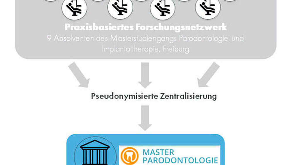 Im Zuge der Digitalisierung von Zahnarztpraxen gibt es heutzutage neue Möglichkeiten, Untersuchungen in einem praxisbasierten Forschungsnetzwerk durchzuführen. Wo in der Vergangenheit ein großer Aufwand betrieben werden musste, um Aufzeichnungen über die Parodontitistherapie und die Patientencompliance zu sammeln und auszuwerten, verwenden die meisten zahnärztlichen Praxen in Deutschland heutzutage eine digitale Behandlungssoftware, um die für ihre Patienten relevanten parodontalen Daten zur Dokumentation zu erfassen. Diese digital gesammelten Aufzeichnungen bilden somit eine ideale Basis, um wissenschaftliche Untersuchungen durchzuführen und um ein praxisbasiertes Forschungsnetzwerk zu unterstützen. Voraussetzungen für den erfolgreichen Einsatz solcher Systeme zur Zentralisierung von Behandlungsdaten ist allerdings die Einhaltung von Datenschutzvorgaben und die Bereitstellung von einfachen Prozeduren für den Datentransfer.