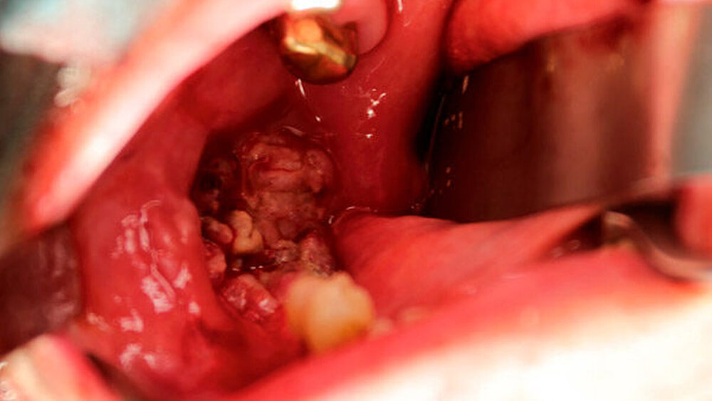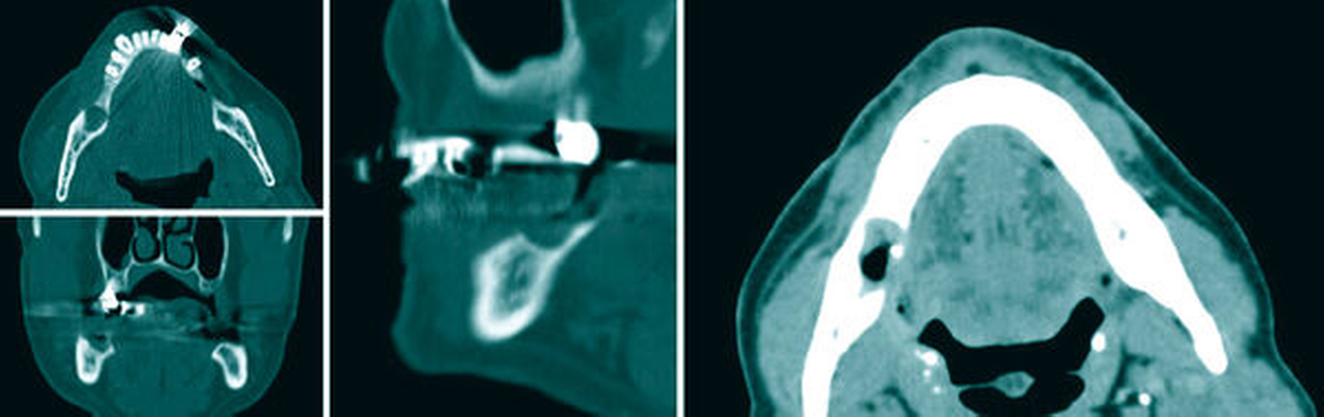 Im November 2019 stellte sich ein 74-jähriger Patient zur Weiterbehandlung eines alio loco histologisch gesicherten Plattenepithelkarzinoms (PEC) regio 048 in unserer ambulanten Sprechstunde vor. Intraoral zeigte sich ein ulzerierender, derbe wachsender, dezent schmerzhafter Tumor mit beginnender ipsilateraler Vincent-Symptomatik (Abbildung 1).