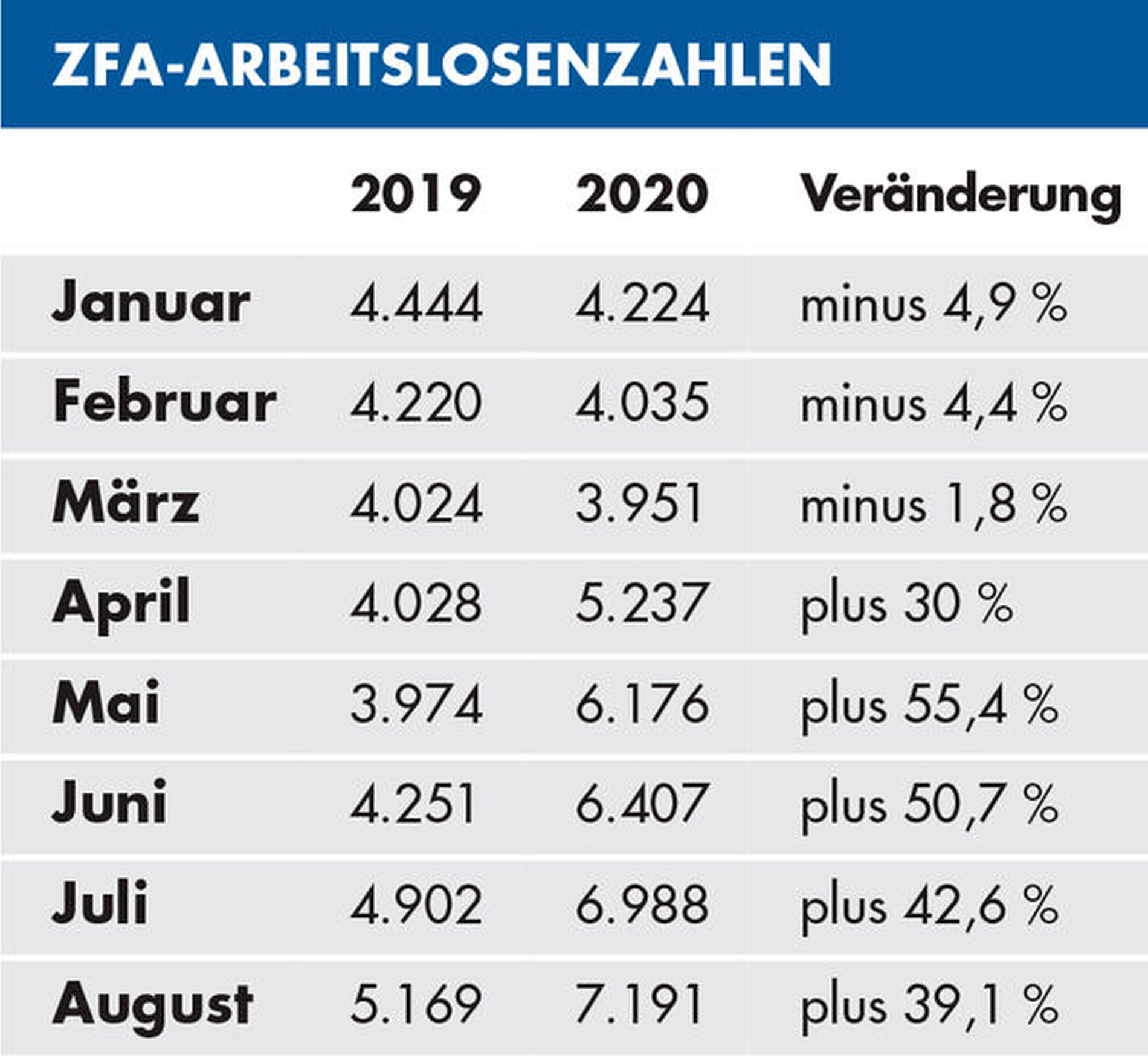 Mit großer Sorge betrachte der VmF die Entwicklung der Arbeitslosigkeit der Zahnmedizinischen Fachangestellten. Im März 2020 lagen die Arbeitslosenzahlen mit 3.951 arbeitslosen ZFA auf dem niedrigsten Stand seit 2012. Seit April 2020 sind sie kontinuierlich angestiegen – etwa im August um 39,1 Prozent im Vergleich zum Vorjahr.