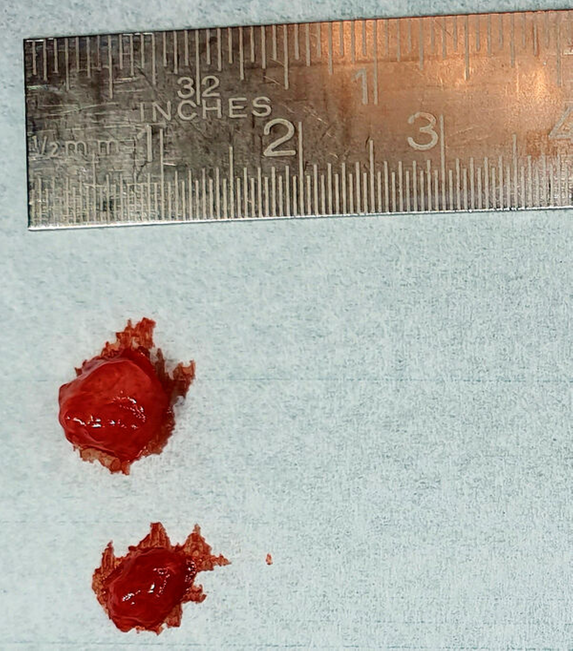 Nach der kompletten Darstellung erfolgte die Resektion in toto (Abbildung 3).